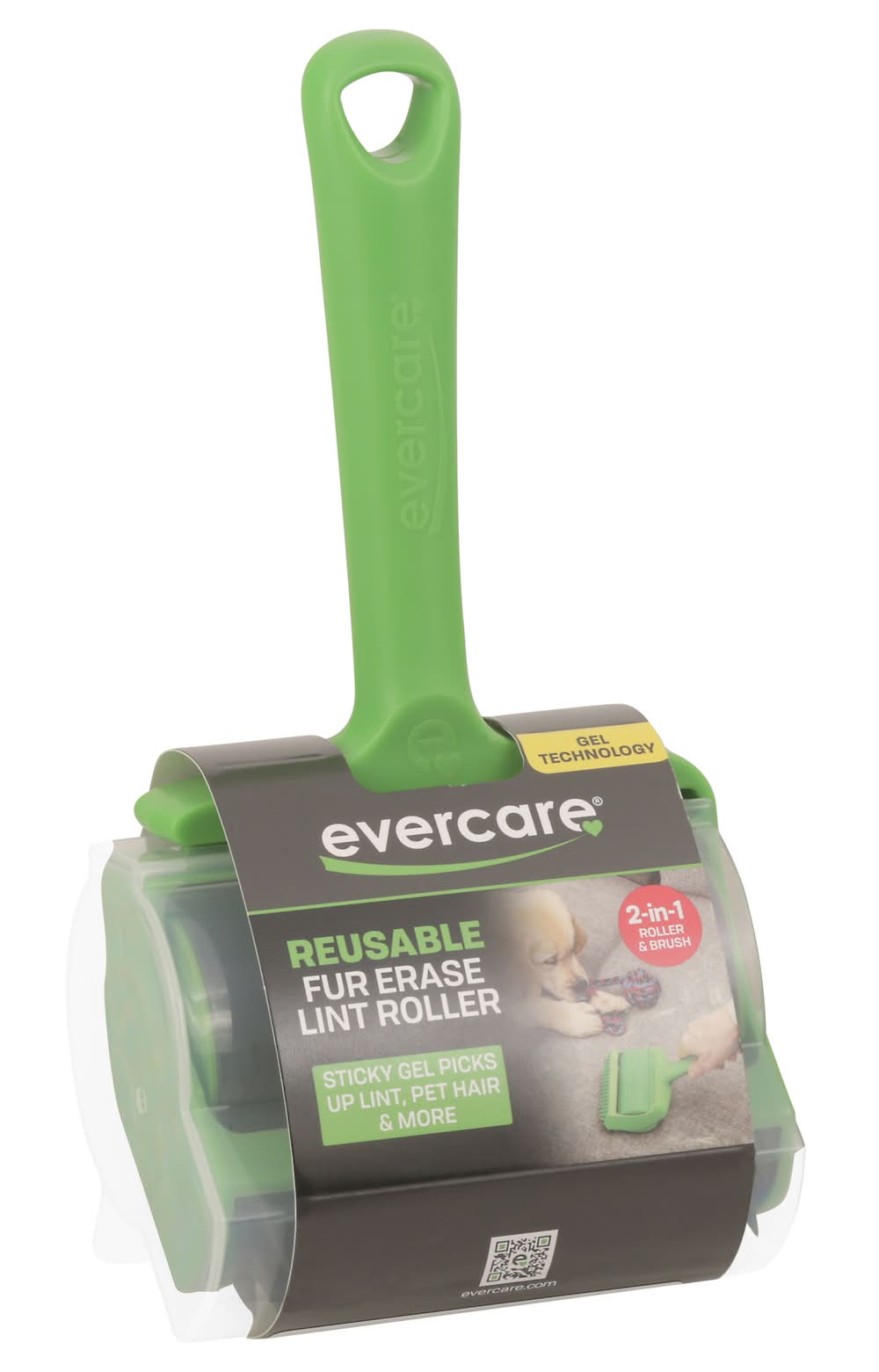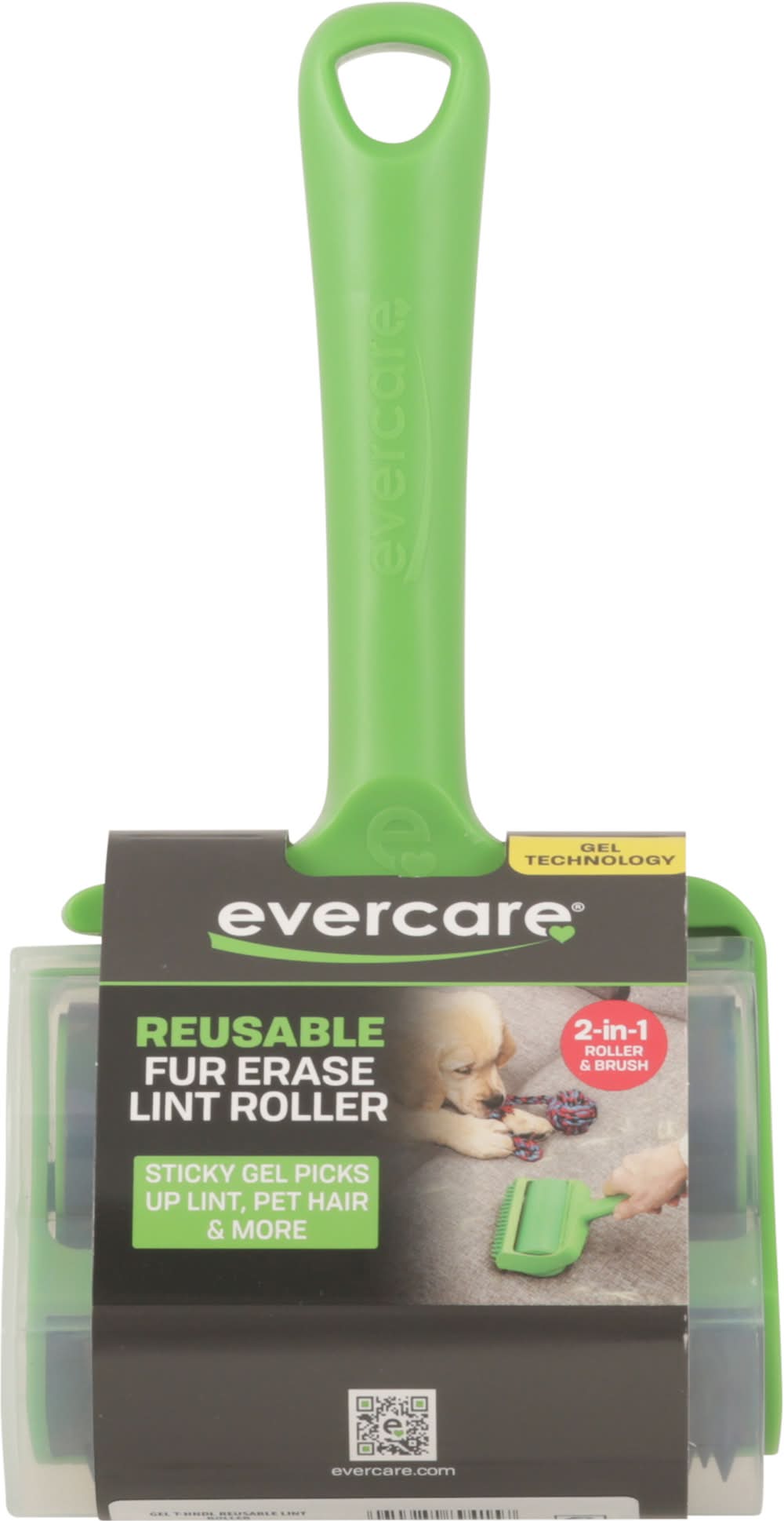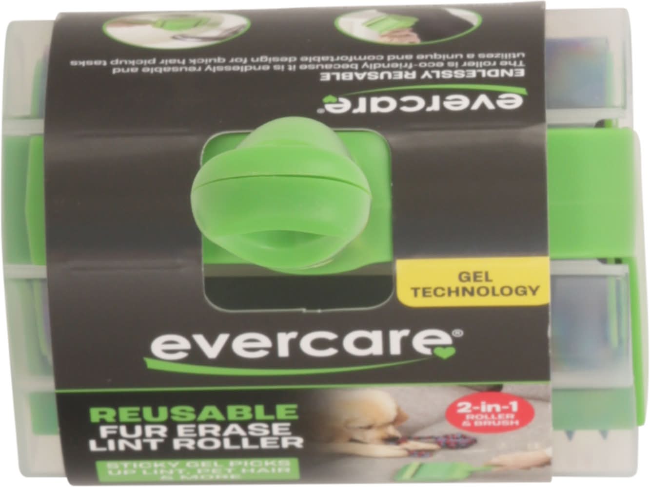 2-in1 roller & brush. Gel technology. Sticky gel picks up lint, pet hair & more. evercare.com. Endlessly Reusable. The roller is eco-friendly becasue it is endlessly reusable and utilizes a unique and comfortable design for quick hair pickup tasks. Made in China.