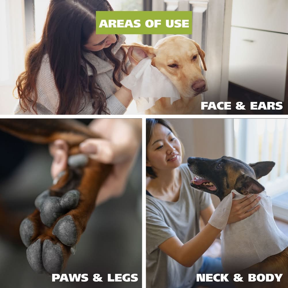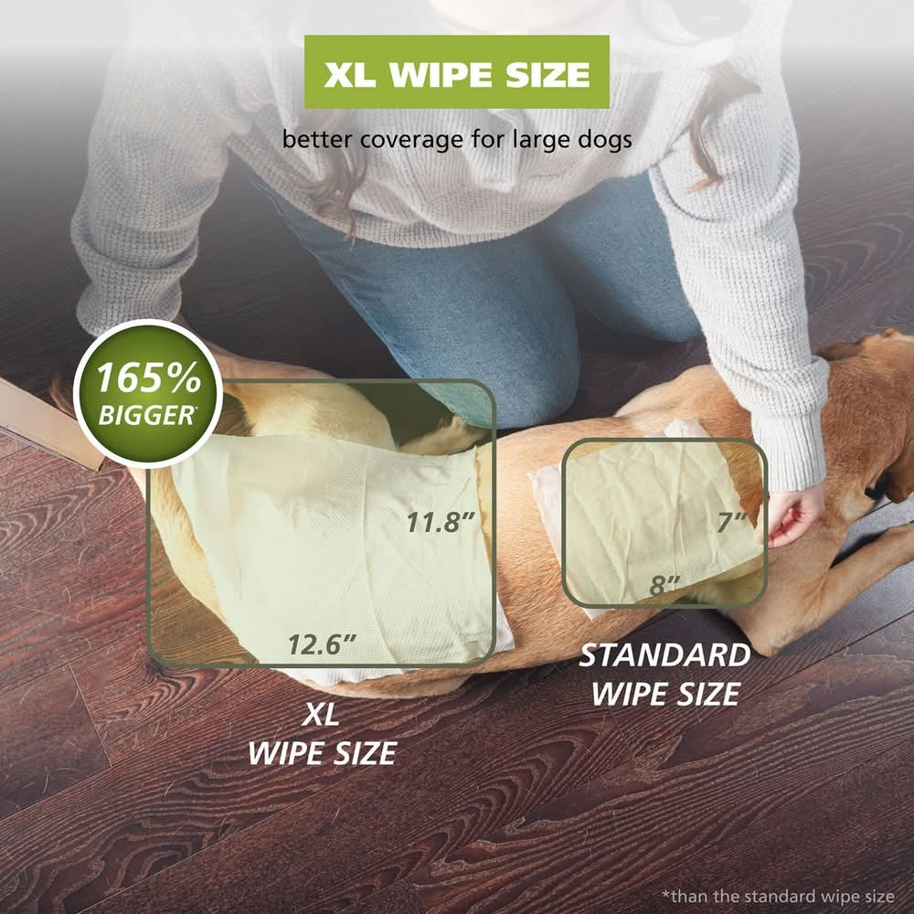 The Wahl extra-large pet wipes, making them 165% bigger than our standard wipes. Their massive size provides better coverage, making it easier to clean your large pet thoroughly with fewer wipes. Designed for versatile use, these dog cleaning wipes are perfect for freshening up your dog’s paws, face, ears, and body. Whether after a walk, playtime, or in between baths, they offer a mess-free cleaning solution with no rinsing required. Formulated with pet-friendly ingredients, our pet wipes for dogs are pH balanced, alcohol-free, paraben-free, and PEG-80-free, making them safe for dogs and puppies with allergies, as well as pet parents who like to avoid harsh chemicals in their dog grooming supplies. They gently cleanse while leaving behind a fresh coconut lime verbena scent. To ensure freshness, preventing them from drying out before use. The multi-pack option also allows you to keep a pack at home and another in the car for easy, on-the-go cleaning whenever needed. Not only do these dog wipes offer quick and hassle-free cleaning, but they also help reduce odors and remove dirt, allergens, and dander from your pet's fur. While there are no harmful chemicals in our pet products, some pets are sensitive to certain plant oils used in our products. Wahl strongly recommends talking to your vet and doing a small spot test on your pet at least 24 hours before using any new product. These dog wipes are an essential part of your dog bathing supplies, ensuring your furry friend feels fresh and clean between baths. With Wahl's Refresh Massive Wipes, you can maintain your dog's hygiene effortlessly. So say goodbye to messy clean-ups and hello to a convenient and efficient way of keeping your pet clean and comfortable. Order your pack of pet wipes for dogs today and experience the joy of having a happy and clean pup by your side! Durable & High-Quality. Made from thick durable material, these extra-large pet wipes keep dirt, grime, and mess in the dog wipe away from your hands Pet-Friendly Formula – Our coconut lime verbena dog wipes are pH balanced, alcohol-free, paraben-free, and PEG-80-free, ensuring a safe and gentle clean for dogs and puppies while avoiding harsh chemicals that could irritate their skin. Made in the USA Wahl has been serving professional veterinarians and groomers for over 50 years—we are a trusted company of animal lovers that put pride into the dog products we create and always want the best for your furry family members. • Pack size: 3 • Size: 12.6x11.8 in