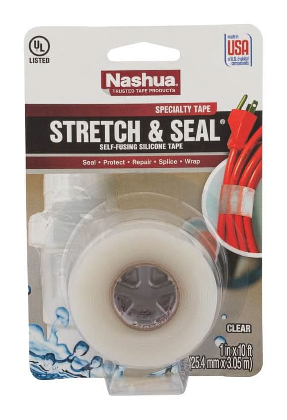 Professional results that a DIYer can be proud of begins with Stretch and Seal Self-Fusing Silicon Tape by Nashua. No toolbox should be without this tape. This tape stretches and seals to itself forming an instant and permanent waterproof seal. Easy to remove, Stretch and Seal leave no sticky residue behind. Nashua Tape. Trusted by professionals. DIY approved. Count on Nashua to get the job done right. Color: Clear