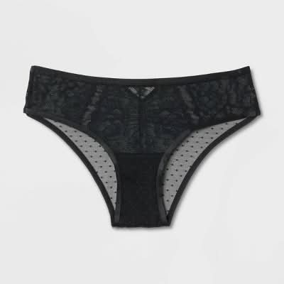 Auden Dot Mesh Lace Cheeky Underwear, XS, Black