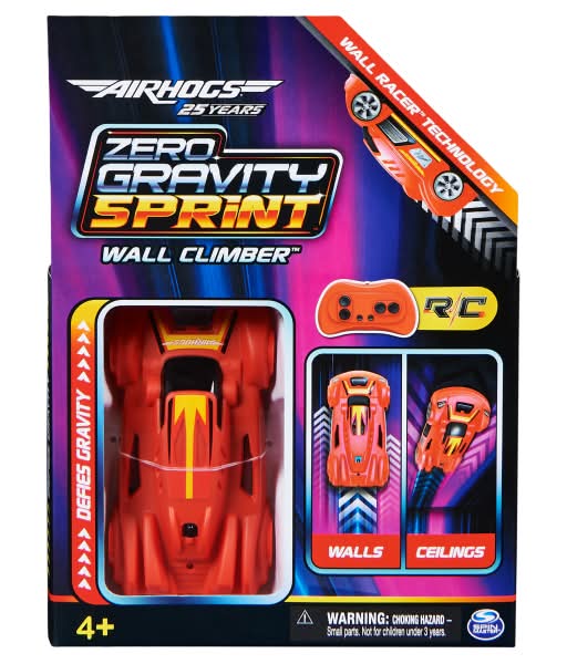 Defy gravity on and off the walls with the Air Hogs Zero Gravity Sprint Wall Climber. With the patented Wall Climber Technology, this nimble car toy can drive on any smooth surface like walls, floors and even upside down on your ceilings. Can your toy cars do that? Go between floor racing and wall/ceiling racing modes with a switch of a button located at the back of the vehicle. Watch the round wheels and iconic red race color zip and zoom through your home as one of your child’s new favorite cool toys. The multi direction remote control allows for accuracy to develop and master your Wall Racer skills. Spin around in any direction and have all eyes on your race car. Recharge your remote-control car via the included USB-C wire to bolt into your next race. 2 AAA batteries (not included) are required to power the remote control. This makes a great addition to playing with your other monster trucks, action figures, toy figures & playsets around the home. Celebrate 25 years of Air Hogs fun and have a whirl anywhere indoors with the Zero Gravity Sprint Wall Climber. Includes: 1 Zero Gravity Sprint Wall Racer, 1 Controller, 1 USB Charging Cable, 1 Instruction Guide Color: Red