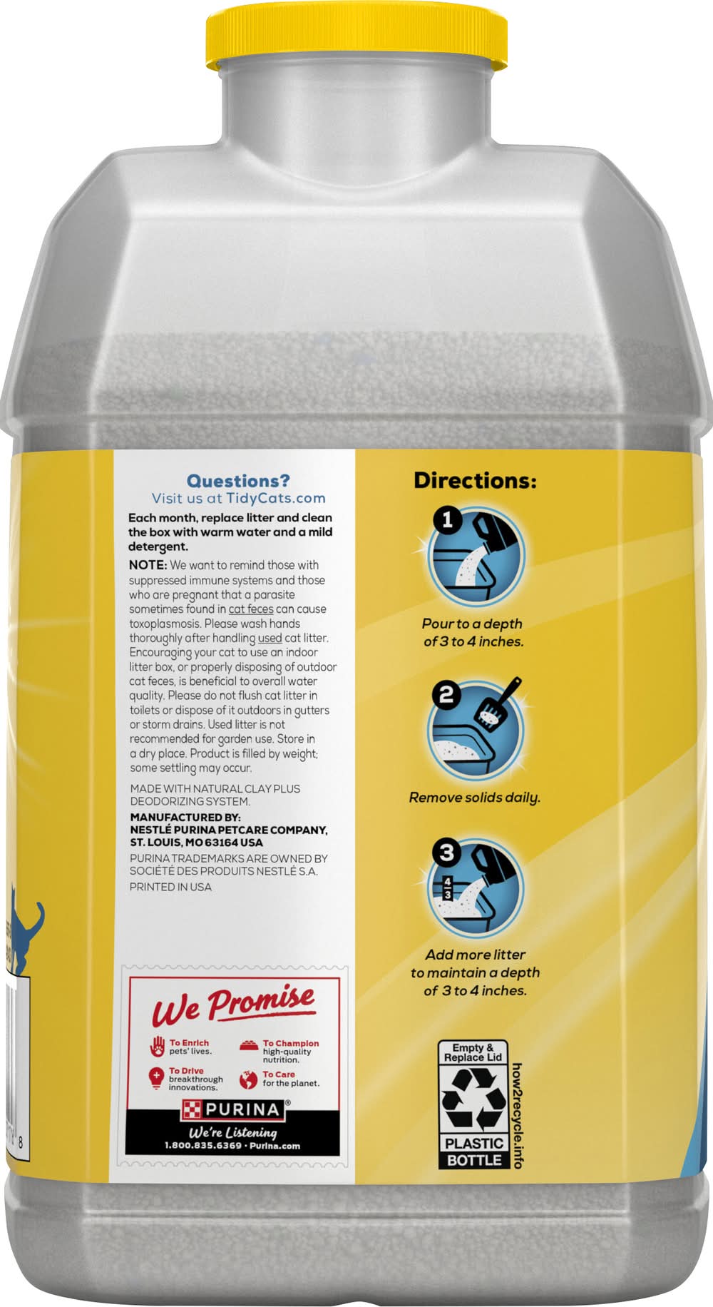 We know you have no time to waste, and that’s no problem with this unique scoopable litter formula. Our clumping cat litter features a quick-release deodorizing system to ensure immediate litter odor control, neutralizing ammonia, urine and fecal odors for all-in-one, 10-day-guaranteed odor control when used as directed. Put to work and help lock away odors with our Bright Outdoors scent to help maintain a fresh-smelling home you can feel confident inviting friends and family to visit. Our Tidy Cats Instant Action immediate odor control cat litter is formulated for multiple cats and helps create an inviting atmosphere for your cats, no matter which litter box they choose each day. • Nestle Purina PetCare Company, St. Louis,MO,63164 • Packaging: Reusable