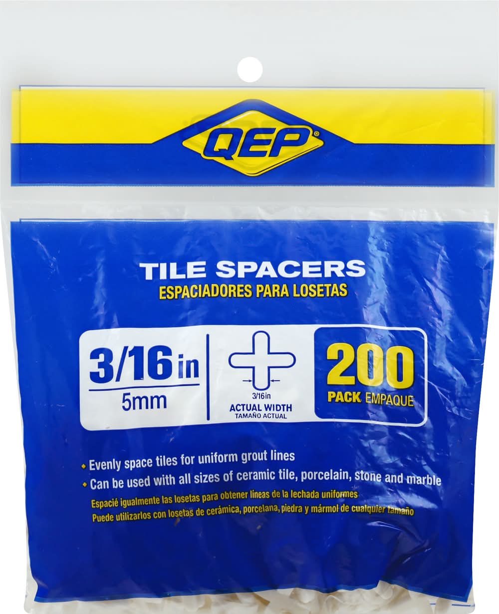 1/8 Inches (3 mm). 1/8 Inches actual width. Evenly space tiles for uniform grout lines. Can be used with all sizes of ceramic tile, porcelain, stone and marble. www.qep.com. Made in USA Qep,