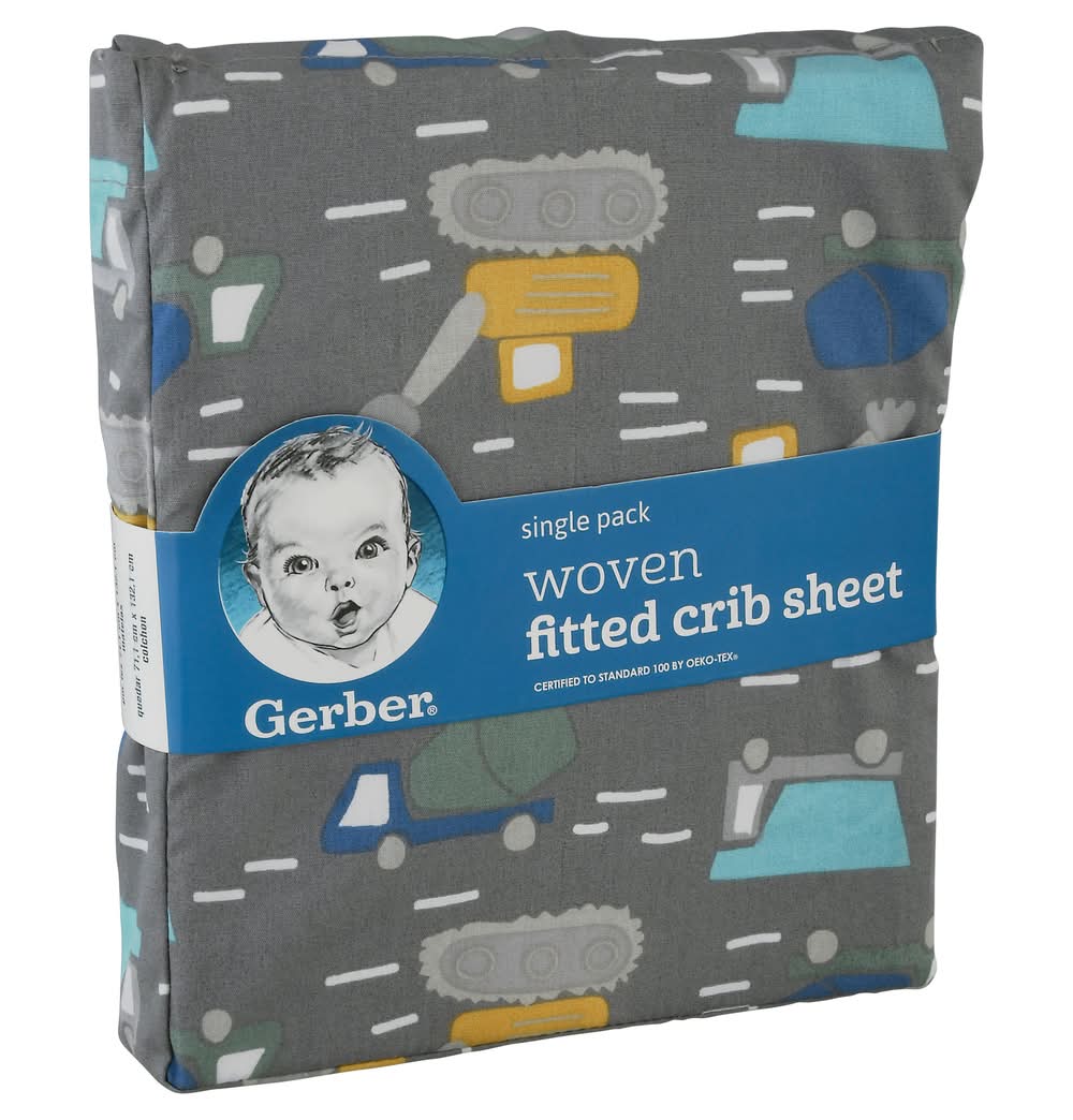 fits 28 in. x 52 in. mattress. Certified to standard 100 by OEKO-TEX. OEKO-TEX confidence in textiles standard 100. Tested for harmful substances. www.oeko-tex.com/standard100. gerberchildrenswear.com. Go online for additional styles and sizes. Made in Pakistan. Gerber Childrenswear LLC,
