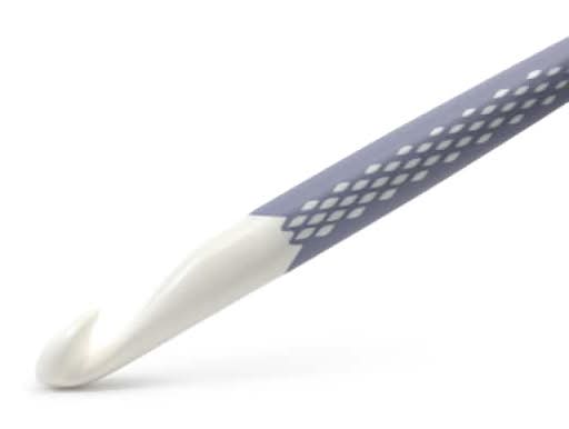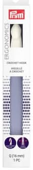 Bring your patterns and designs to life with this ergonomic crochet hook. It has an optimized hook for catching yarn easily and a super smooth handle with a rubberized grip for extra comfort. Q / 16mm. 9" (22.86cm) length. Plastic.