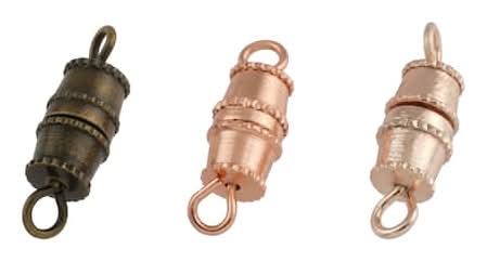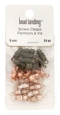 Create stunning custom jewelry with these classic findings. These screw clasps are perfect for making necklaces, bracelets and other accessories. Rose gold, brass and copper oxide colored. 9 mm. 24 barrel clasps. 100% aluminum