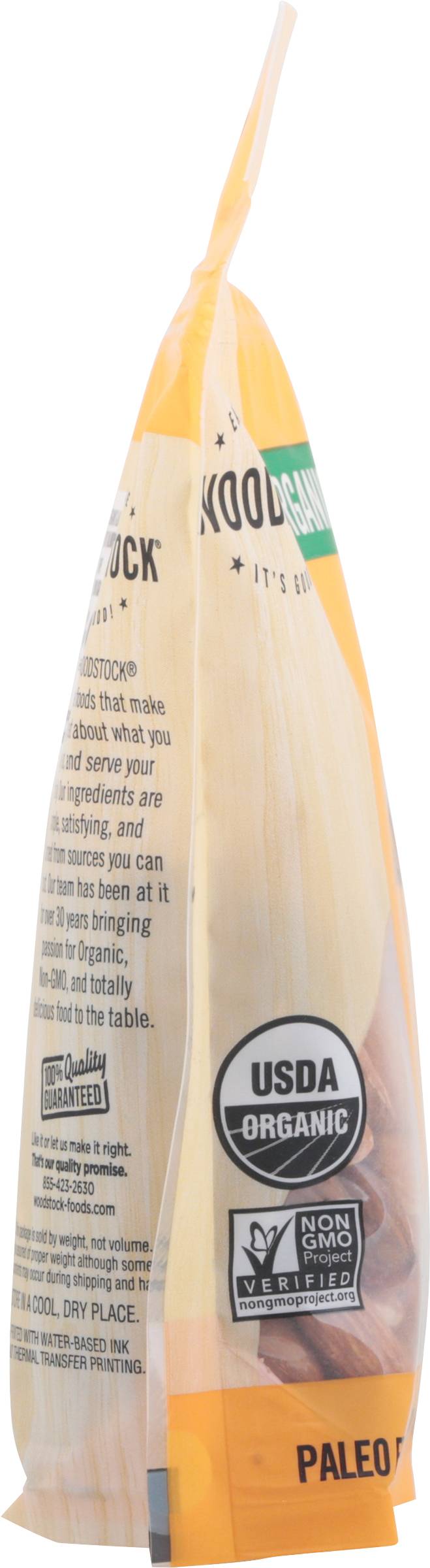 USDA Organic. Certified Organic by Quality Assurance International (QAI) San Diego, CA 92122 USA. Paleo friendly. Non-GMO Project verified. nongmoproject.org. Just nuts. Eat because it's good. Plant protein. Superfood. Here at Woodstock we celebrate foods that make you feel great about what you buy, eat, and serve your family. Our ingredients are simple, satisfying, and farmed from sources you can trust. Our team has been at it for over 30 years bringing passion for Organic, Non-GMO, and totally delicious food to the table. This package is sold by weight, not volume. You can be assured of proper weight although some settling of contents may occur during shipping and handling. Printed with water-based ink and thermal transfer printing. 100% quality guaranteed. Like it or let us make it right. That's our quality promise. 855-423-2630. woodstock-foods.com. woodstock-foods.com. Let's get social! (at)woodstockfoods. Instagram. Facebook. Twitter. Non-BPA bag (Packaging produced without intentionally added Bisphenol-A (BPA)). Product of USA. UNFI, ProvidenceRI02908