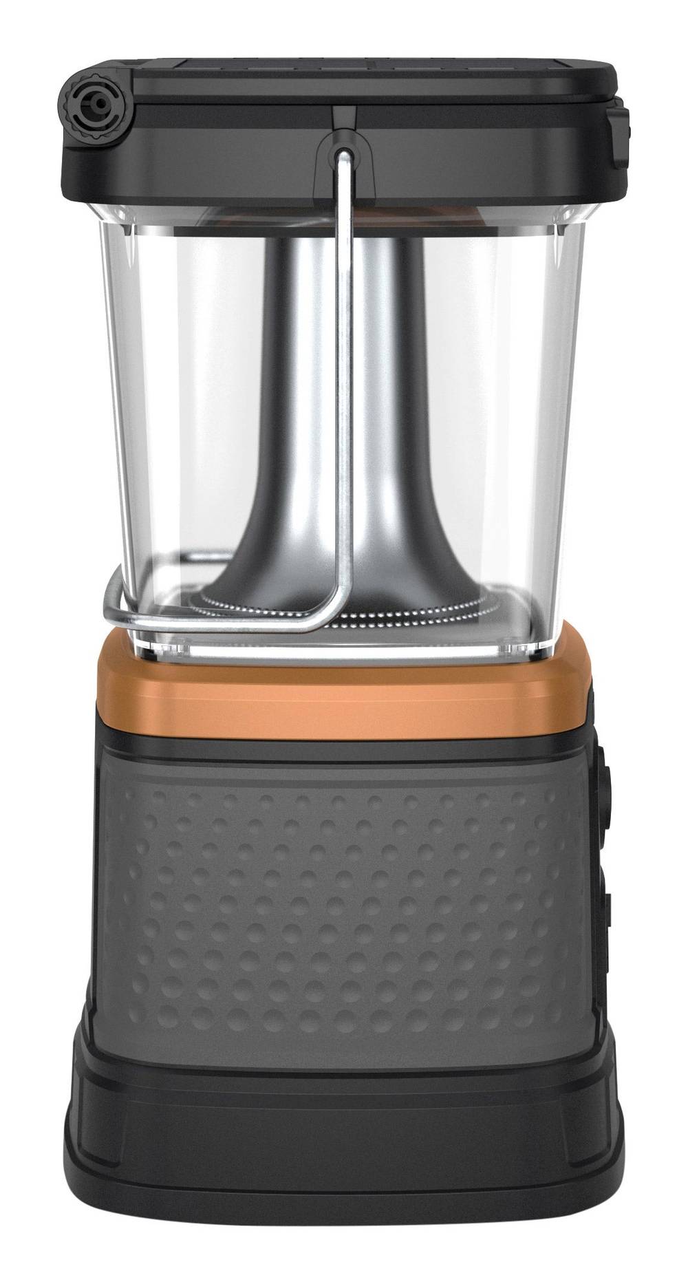 TRI Power Charging – Solar, USB & QI Charging; Dual Battery Source; Modes High, Medium, Low and Power Save; USB C In and Out; Includes: (1) Lantern; (1) Charging USB cable.