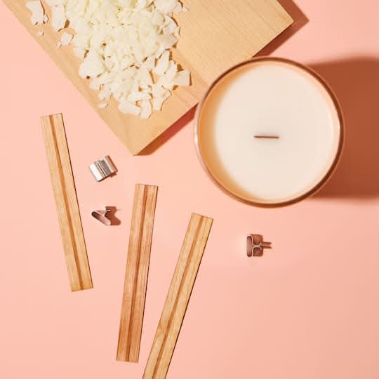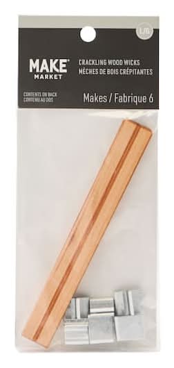 With their distinctive crackling sound while burning and flat, horizontal flame, these wooden wicks from Make Market are a great way to make your handmade candle creations stand out from the rest. Available in multiple widths. wick length each. Makes 6 wicks. Produces a flat, horizontal flame. Easy set up, no centering device needed.