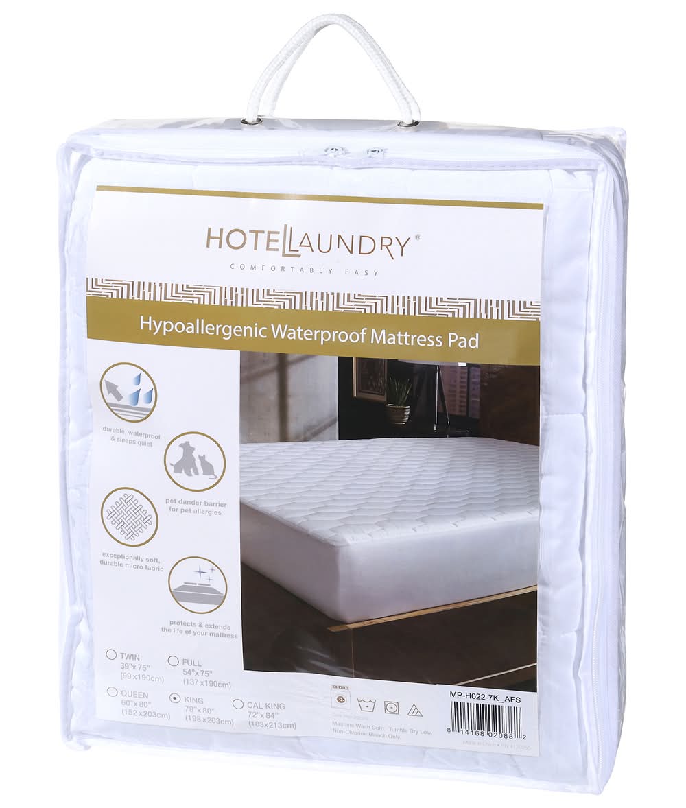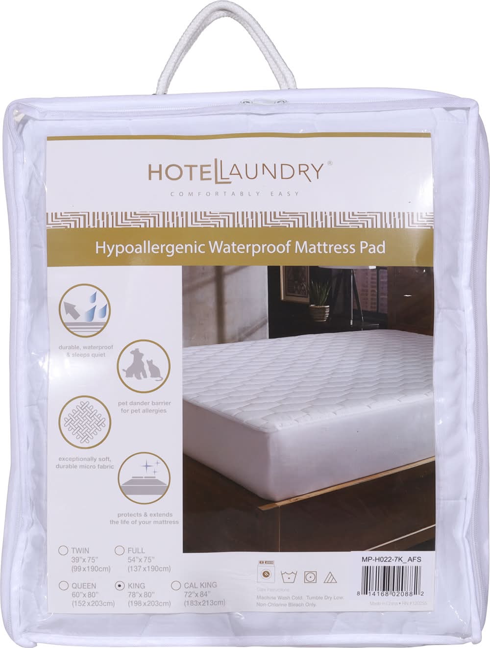 Hotel Laundry Hypoallergenic Waterproof Mattress Pad, King
