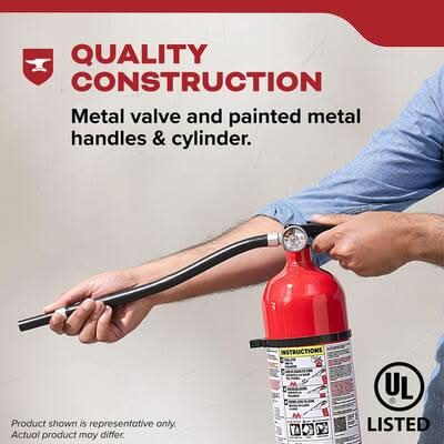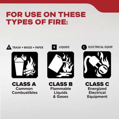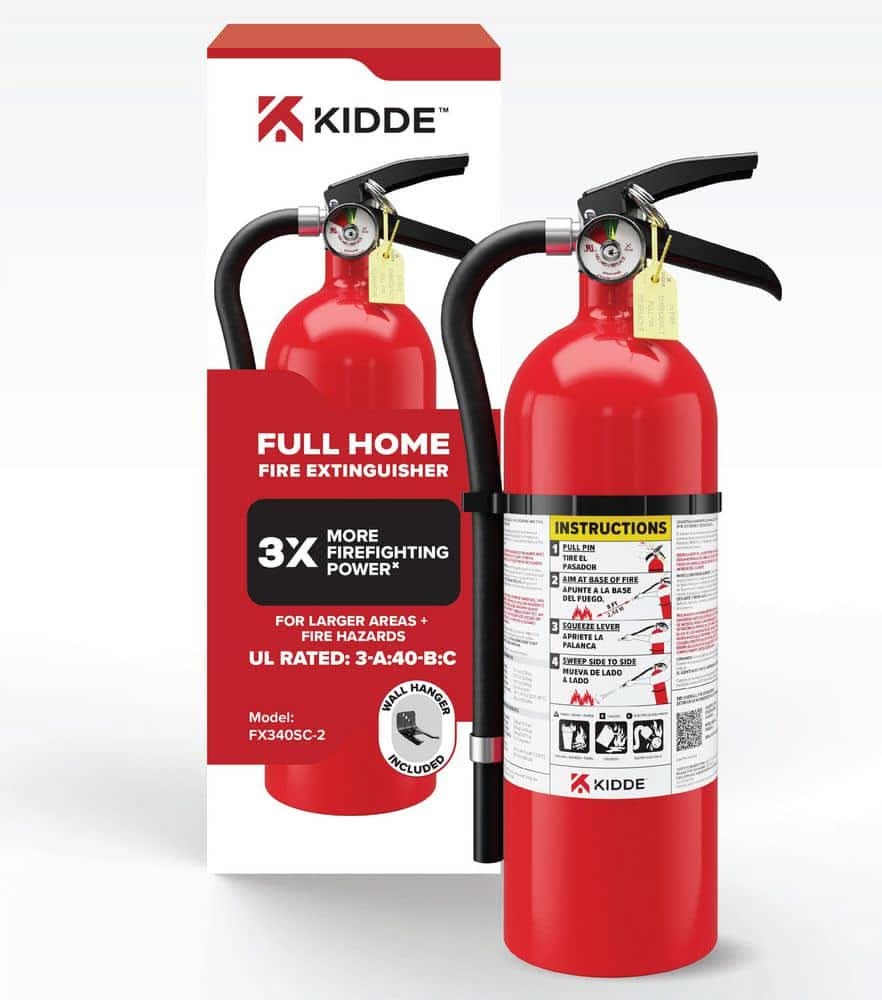 Help safeguard your family with the dependable Kidde Fire Extinguisher for Home, Garage, Patio, Residential 3-A:40-B:C to fight home fires involving trash, wood, paper (Class A), liquids and gases (Class B), and electrical equipment (Class C). Manufactured from durable corrosion-resistant aluminum, the Kidde Home Fire Extinguisher is a breeze to handle-it provides a remarkable discharge rate of 13-15 seconds, a range of 12-18 feet, and an operating pressure of 195 PSI. The sleek, painted steel handle, aluminum cylinder, and metal valve are impact-resistant-making the Kidde fire extinguisher dependable when you need it most. The simple operation is designed to combat fire hazards using the PASS (Pull, Aim, Squeeze, Sweep) firefighting method, and the multi-directional discharge hose allows you to fight fire from various angles. The strap bracket lets you mount the extinguisher in an easily accessible place so it's always ready for an emergency. The easy-to-pull safety pin gives you quick access and a front label makes operation instructions clear. Residential, single-use only. Dispose & replace if used, discharged, or if the fire extinguisher is over 12 years old. UL Listed. 6-year limited manufacturer's warranty. Note that the dry chemical agent in this fire extinguisher is non-toxic and but may cause skin irritation. Place a fire extinguisher within easy reach and on every level of your home where fires are more likely to start.