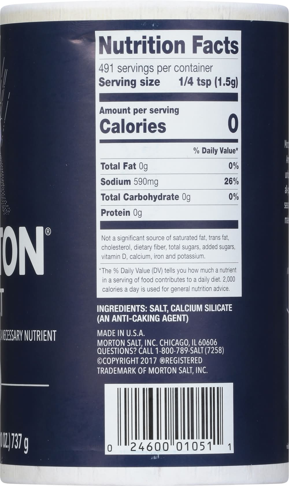 This salt supplies iodide, a necessary nutrient. Plain. Morton Table Salt is a staple in kitchens all across America. That's because it is the perfect choice to unlock the delicious, natural flavors in food. Use this all-purpose salt for all your cooking and baking needs—and for seasoning at the table. Morton Salt, Inc., Chicago,IL,60606