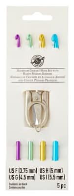 Find Aluminum Crochet Hook Set with Scissors by Loops & Threads at Michaels. Boye crochet hooks feature optimally smooth throats and rounded heads for the most precise, professional-looking work. US F (3.75 mm). US G (4.5 mm). US H (5 mm). US I (5.5 mm). Folding scissors