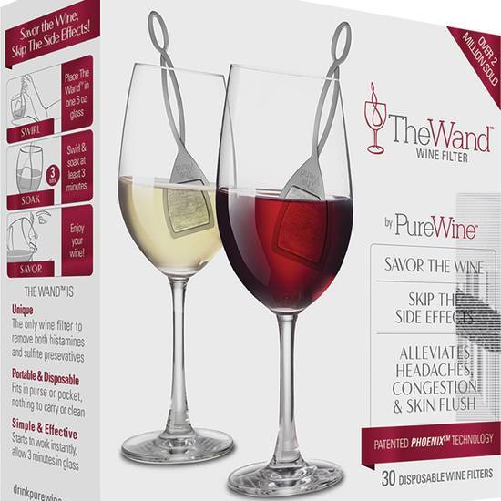 Experience the benefits of a wine filter that alleviates common side effects associated with wine consumption. Suitable for all types of wine, including red, white, and sparkling, this filter enhances the natural attributes of the beverage, such as flavor, aroma, and color. Designed for convenience, the Wand is portable, easy to use, and disposable, negating the need for cleanup. It's an ideal accessory for social events and makes a thoughtful gift. Each filter is capable of purifying and aerating a single glass of wine in approximately three minutes. Additionally, the product helps restore the taste of oxidized, open wine bottles using patented purification technology. The filters are made without harsh chemicals, are FDA compliant, BPA-Free, and proudly manufactured in the USA.