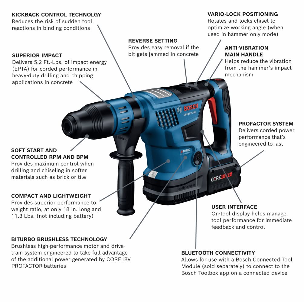 Bosch Profactor 18v Connected Ready Sds Max Rotary Hammer Kit With High Power Batteries, 1-9/16 In (13.4 lbs)