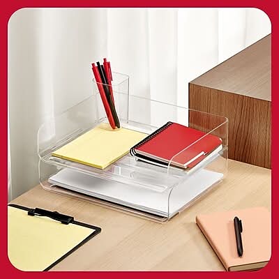 Store pens, pencils, and markers in style with the TRU RED Clear Pencil Cup. Its minimalist design blends with any workspace. - Holds multiple writing utensils - Clear plastic for visibility and easy matching - Space-saving cylindrical shape - Durable, easy-to-clean construction