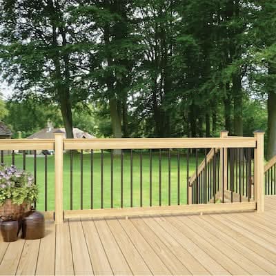 Add safety and style to your outdoor spaces with this molded handrail. Protected by pressure treatment from termites, rot and fungal decay. Perfect for decks, play sets, stair support and other outdoor projects where handr Drilling, sawing, sanding or machining wood products can expose you to wood dust, a substance known to the State of California to cause cancer. Avoid inhaling wood dust or use a dust mask or other safeguards for personal protection. For more information go to www.P65Warnings.ca.gov/wood. Size: 2 in X 4 in X 6 ft