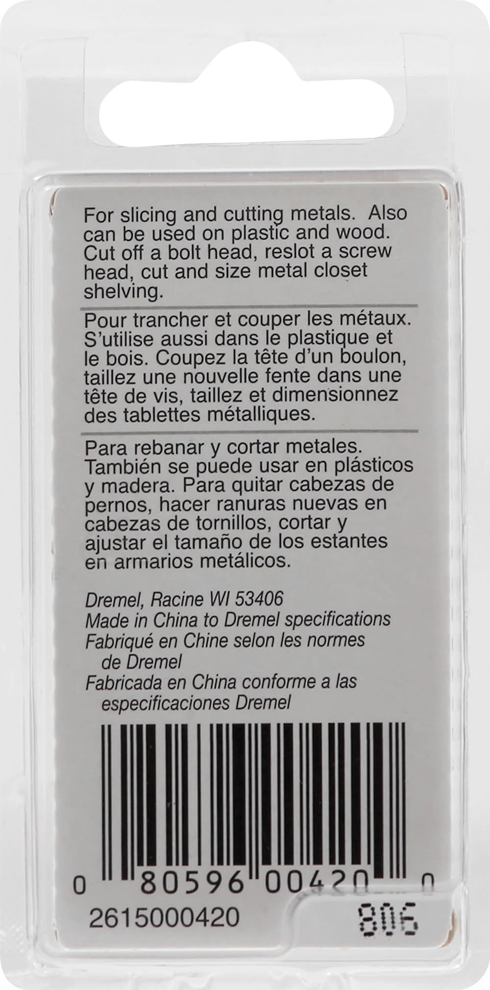 For slicing and cutting metals. Also can be used on plastic and wood. Cut off a bolt head, reslot a screw head, cut and size metal closet shelving. Made in China to Dremel specifications. Dremel,