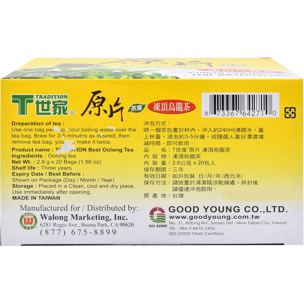 Tradition Taiwan Oolong Tea Bags (1.98 oz, 20 ct)
