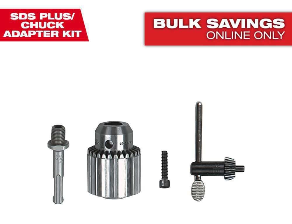 Expand the versatility of your rotary hammer with the SDS/Chuck Adapter Kit from Milwaukee. It permits straight shank twist bits to be used in an SDS hammer drill so you can perform a multitude of tasks with the same machine. This heavy-duty device is constructed with steel to withstand the rigors of abusive job site use. The Milwaukee SDS Plus to Chuck Adapter Kit lets you use straight shank twist bits in your rotary hammer for greater productivity.