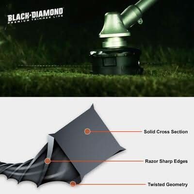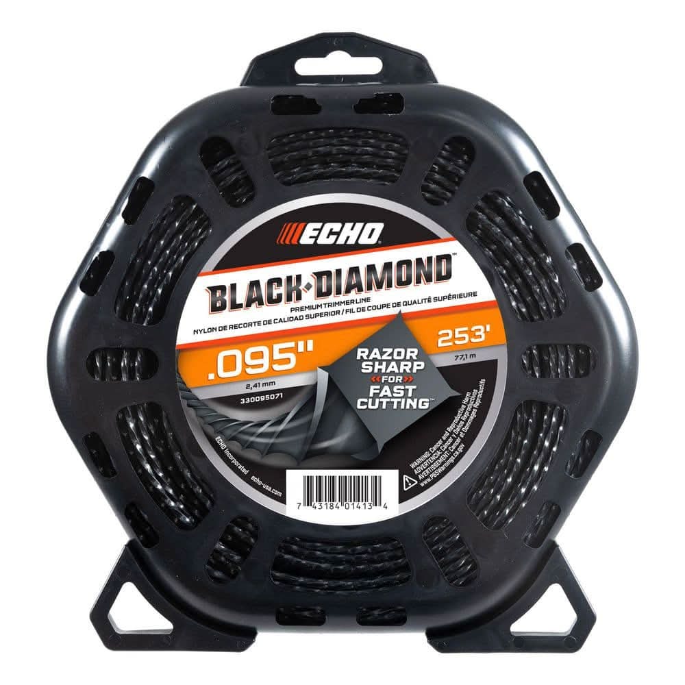 ECHO Black Diamond .095 in. trimmer line offers ultra-fast cutting for professionals and homeowners. The twisted, diamond-shaped line offers razor sharp edges and delivers a clean, even cut with superior cutting performance every time. Intended for medium to industrial landscaping use in residential and commercial environments Black Diamond delivers the flexibility for both with a wide range of applications. Black Diamond is manufactured with a high grade Cancer or reproductive harm. www.P65Warnings.ca.gov • Color: Black • Size: 0.095"