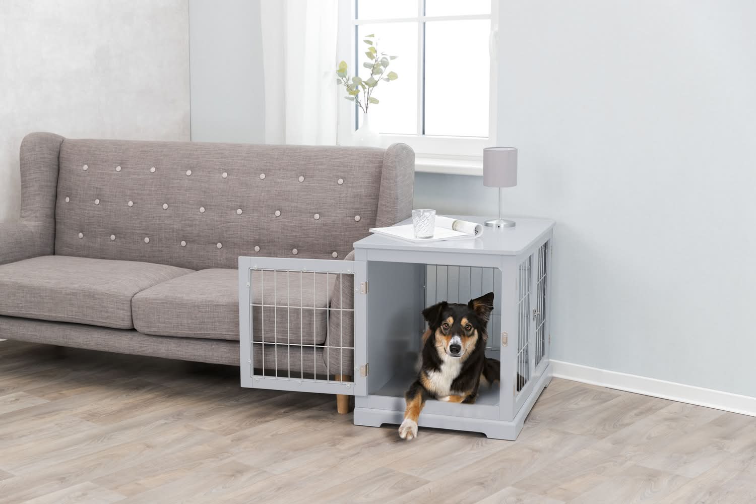 TRIXIE Wooden and Wire Indoor Dog Crate, 32.7 in, Gray (51 lbs)