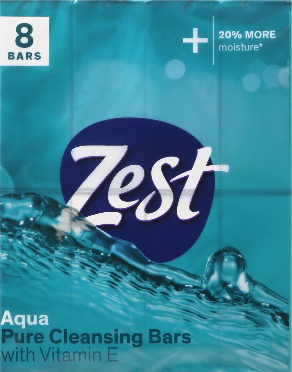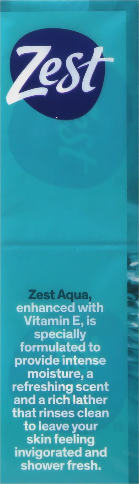 20% More moisture (Compared to original Zest). Zest Aqua, enhanced with vitamin E, is specially formulated to provide intense moisture, a refreshing scent and a rich lather that rinses clean to leave your skin feeling invigorated and shower fresh. Not for individual sale. zest.com. 100% recycled paperboard. Recyclable.