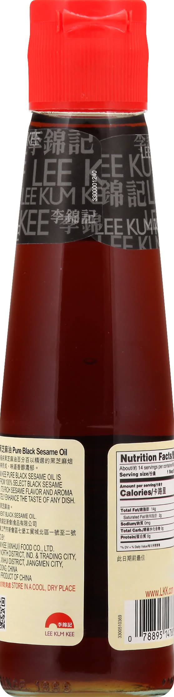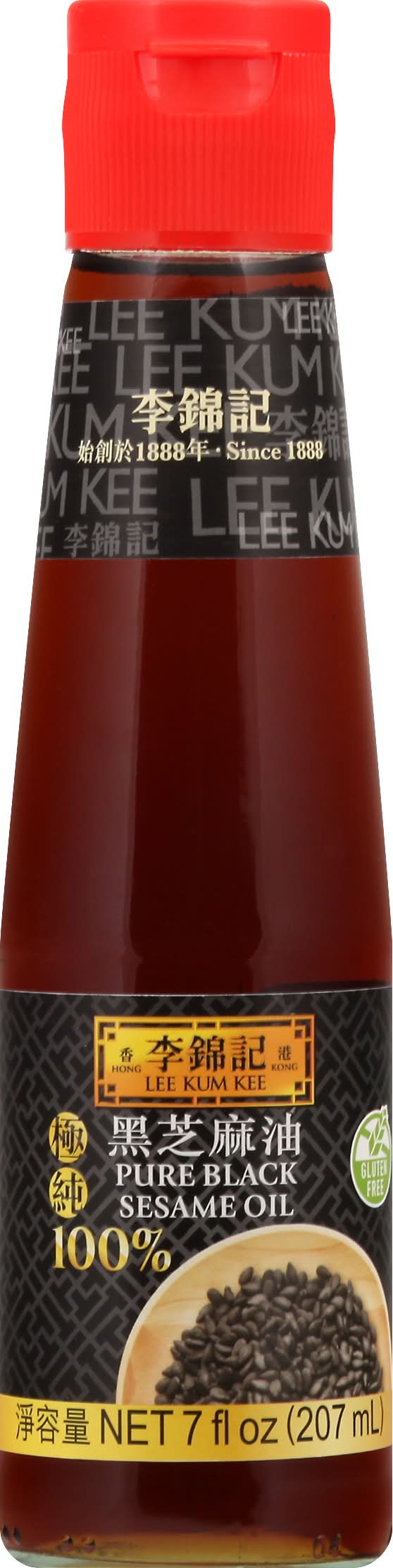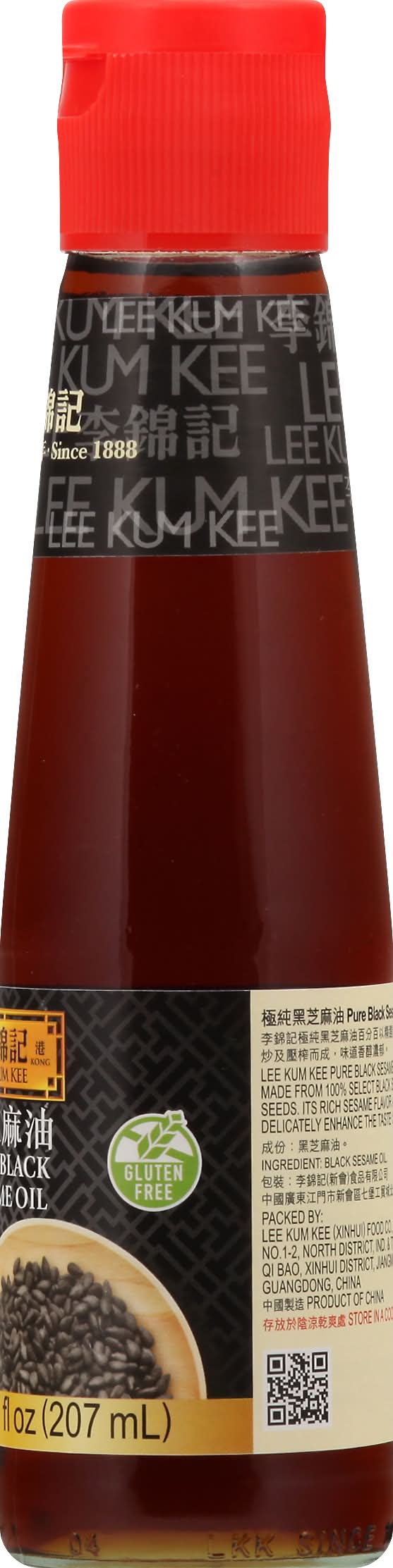 Gluten free. Since 1888. Lee Kum Kee Pure Black Sesame Oil is made from 100% select black sesame seeds. Its rich sesame flavor and aroma delicately enhance the taste of any dish. www.LKK.com. Product of China.