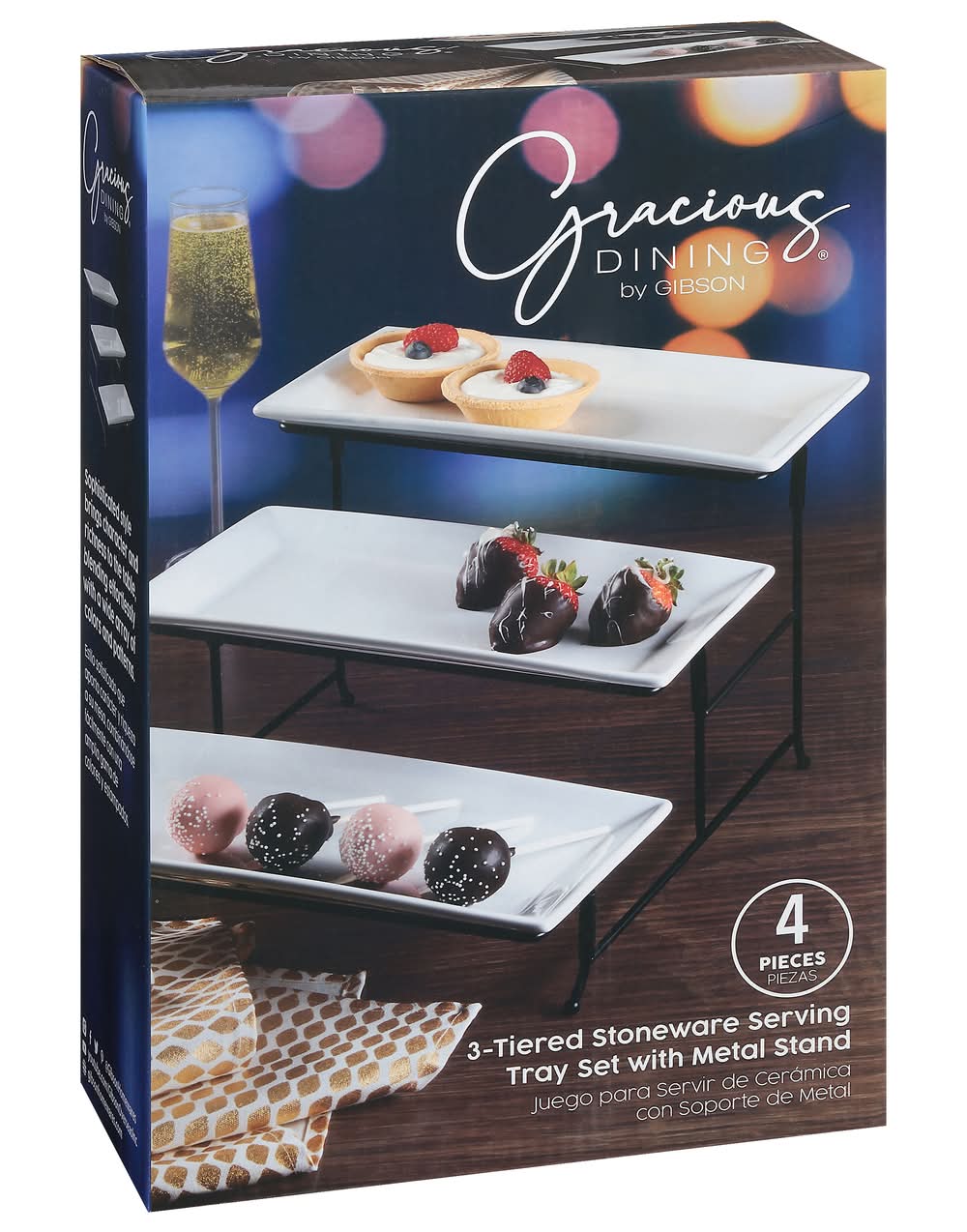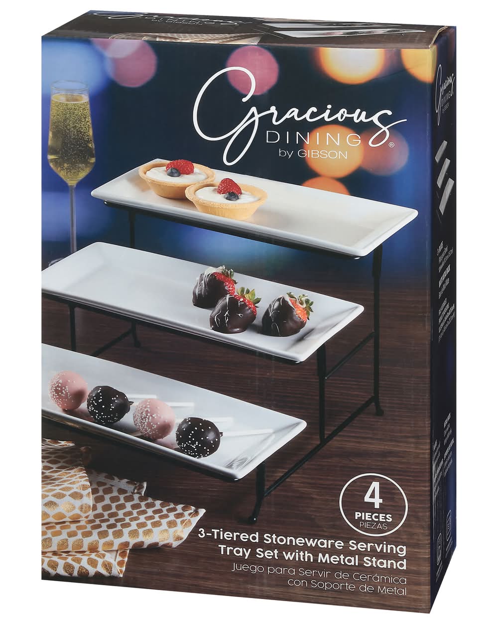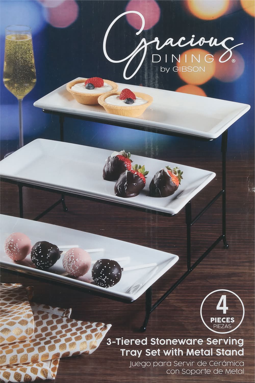 Gibson Home 3 Tiered Stoneware Serving Tray Set