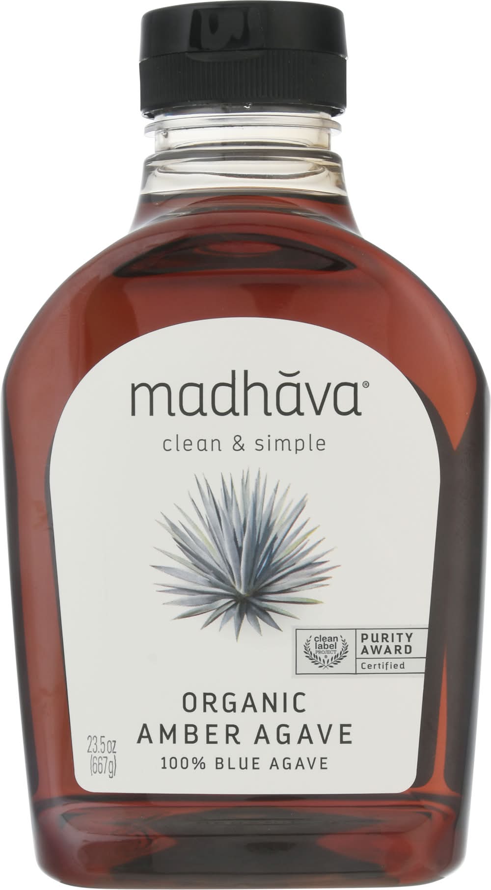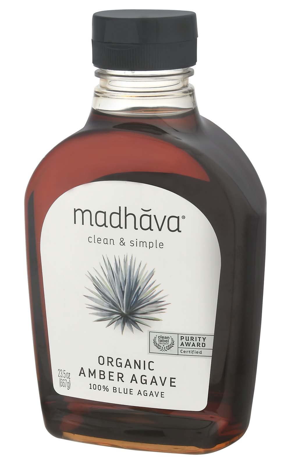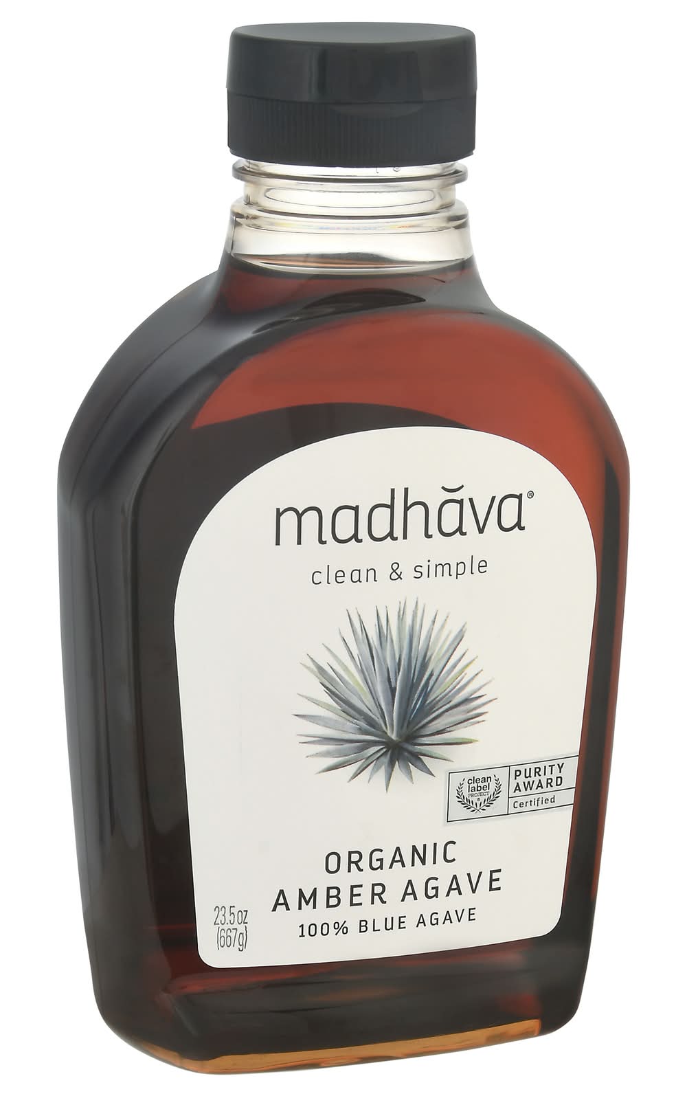 The syrup is derived exclusively from blue weber agave plants and is a low glycemic alternative to processed sugars and artificial sweeteners. It has been certified organic by Kiwa BCS Oko Garantie GmbH and holds the Additionally, this product is vegan-friendly, gluten-free, and has been recognized for purity, authenticity, and antioxidant superiority by the Clean Label Project. Each bottle offering a clean and simple option for sweetening foods and beverages. • Madhava, Ltd., Boulder,CO,80301 • Packaging: Reusable