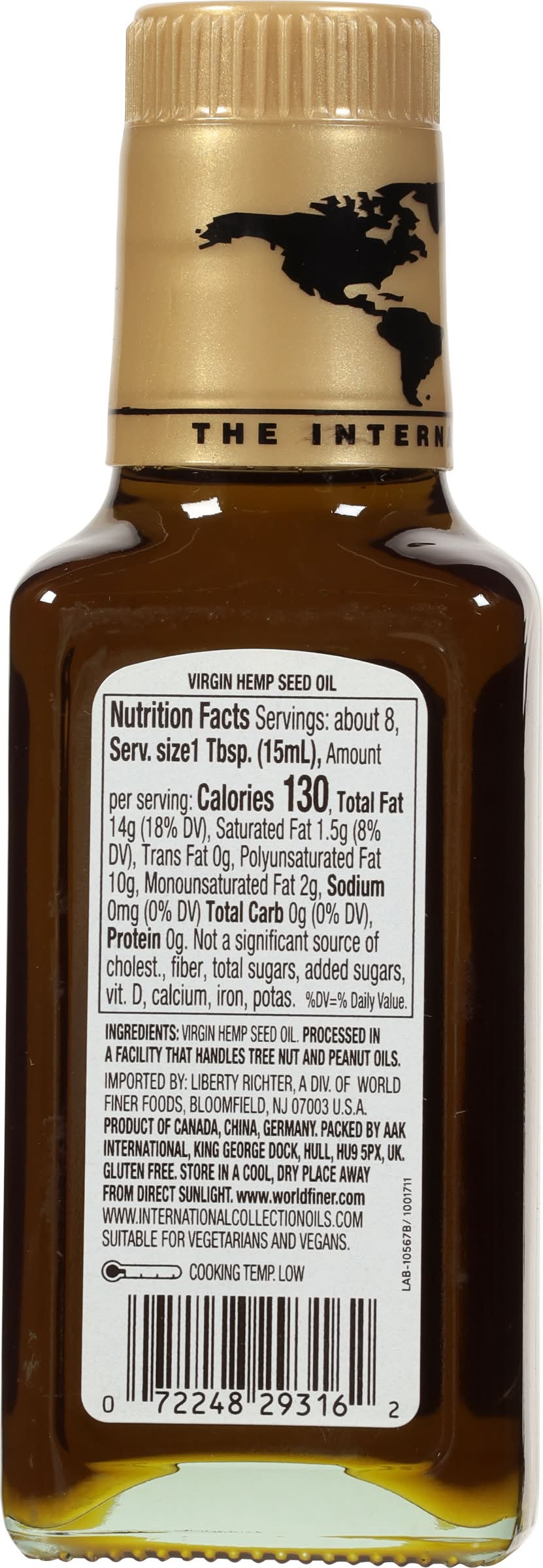 Hemp Seed Oil, Virgin World Finer Foods,