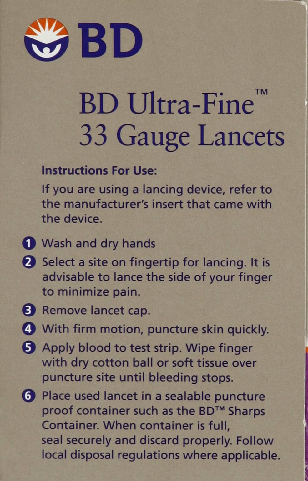 Lancets, 33 Gauge 1 Becton Drive, Franklin Lakes, NJ 07417