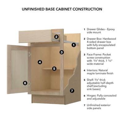 With its wood drawer boxes and adjustable shelf design, the 12 in. Base Cabinet offers versatile storage options. Fully assembled for your convenience, the cabinet offers a classic, stylish look thanks to its recessed-panel door design and concealed hinges. The cabinet's smooth, unfinished surface is easy to paint or stain to match your This product can expose you to chemicals including wood dust, which are known to the State of California to cause cancer. For more information go to www.P65Warnings.ca.gov.