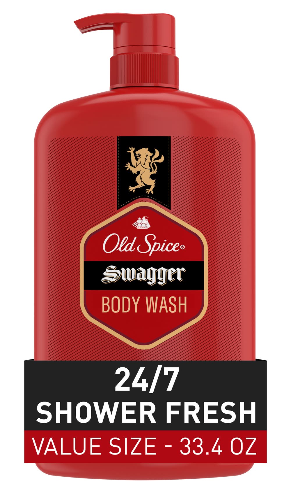 Old Spice Men's Body Wash cleans skin and throws odor out on its ear. Put a small amount in your hand, loofah or washcloth in the shower, work up a lather, and use to clean your body. Where does confidence come from? Does it fall from the sky like rain or grow from the ground like plants? The answer is no, of course not. Confidence is quarried in the Red Zone in great blocks which are chopped down to fit into the Old Spice Red Zone Collection. Swagger has the undeniable scent of masculinity, which happens to smell like lime and cedarwood. Old Spice Men's Body Wash drop-kicks dirt and odor for you, so you can focus on higher pursuits like closing deals or teaching dolphins to speak. Don't deny your drive to impress. Get into the Old Spice Red Zone. • male • Procter & Gamble, Cincinnati,OH,45202