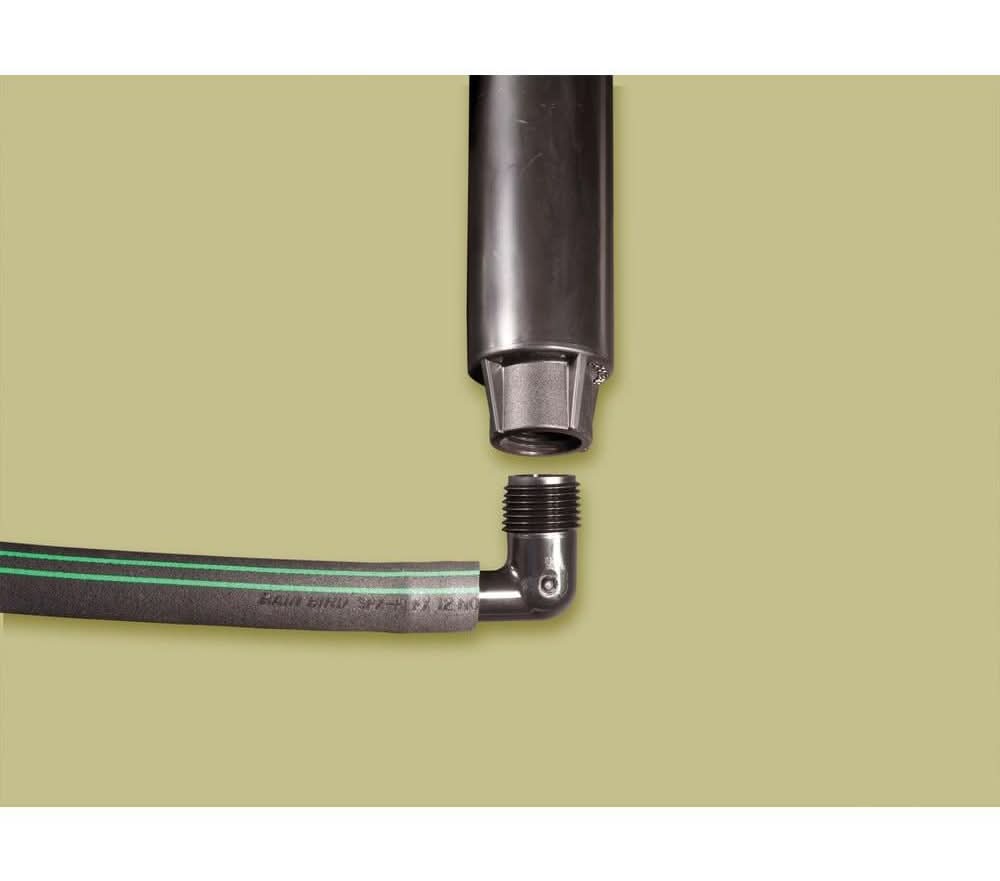 For use with underground sprinkler systems only and not for use with drip tubing. Product can withstand temperatures of up to 110°F (43° C). No tools required for installation. For use in conjunction with swing pipe as a flexible swing assembly. Extended length and aggressive barb lip prevent blow outs. Aggressive barb lip makes a secure connection that is less likely to leak. Easy twist-in insertion no glue or clamps needed for installation. Operating pressure: up to 80 psi. Product can operate with pressure of up to 80 psi (5.5 bar). Color: Black