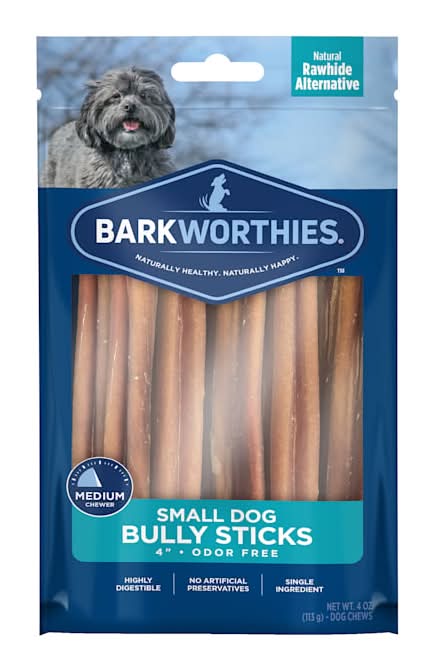 Barkworthies Odor Free Bully Sticks Small Dog Chews, 4" (4 oz)