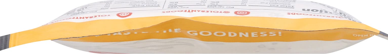 13 g (per 50 g serving) plant-based protein. 6 g (per 50 g serving) fiber rich. 24 g net carbs (per 50 g serving). Net carbs = total carbs - dietary fiber. USDA Organic. Certified Organic by Organic Cerfitiers. Gluten free. Certified Gluten-free. Vegan. Certified vegan. vegan.org. Non GMO Project verified. nongmoproject.org Taste the goodness! No major allergens. At Tolerant, we believe that living a healthy life should be simple. That's why we offer delicious, wholesome plant-based foods that anyone can enjoy. It's goodness you can taste! Product sold by weight, not volume. Product may settle. tolerantfoods.com. Facebook. Tolerantfoods. Instagram. (at)tolerantfoods. Product of Italy. MXO Global Inc.,