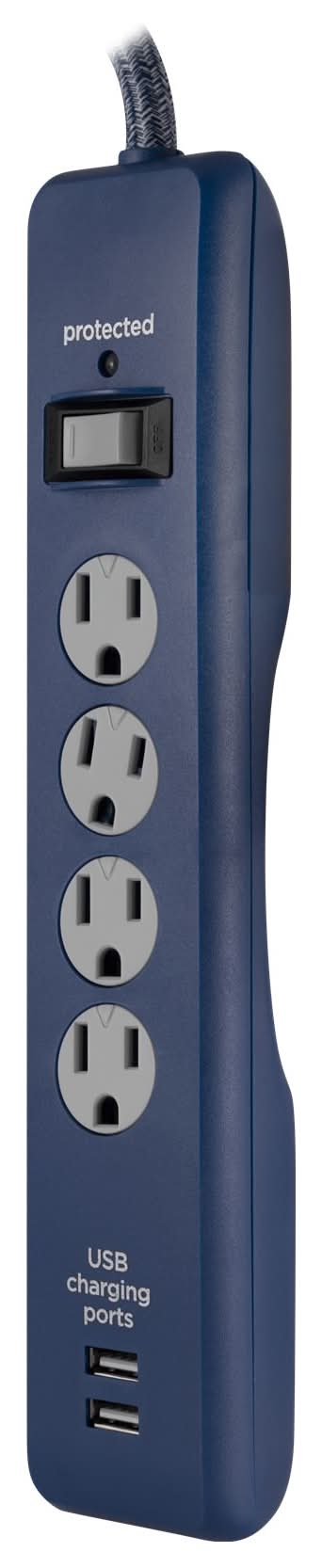 Jasco Products 3-Outlet Washed Indigo Retro Design Power Strip With 2 Usb Ports, Blue