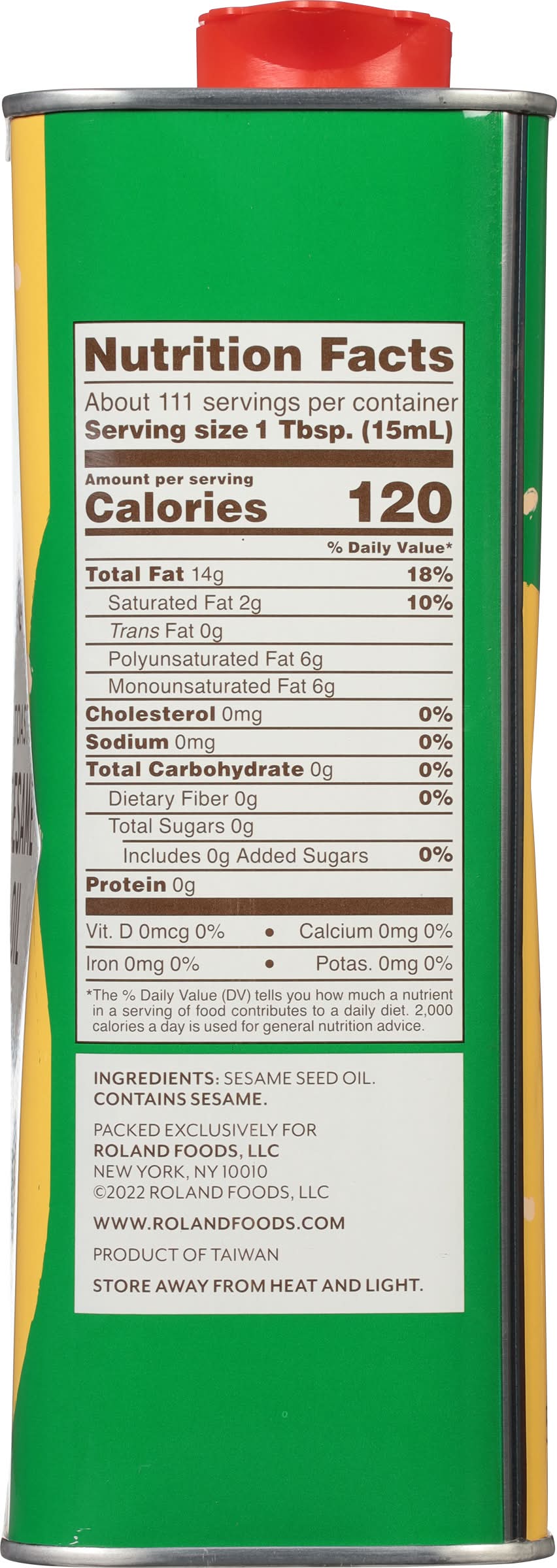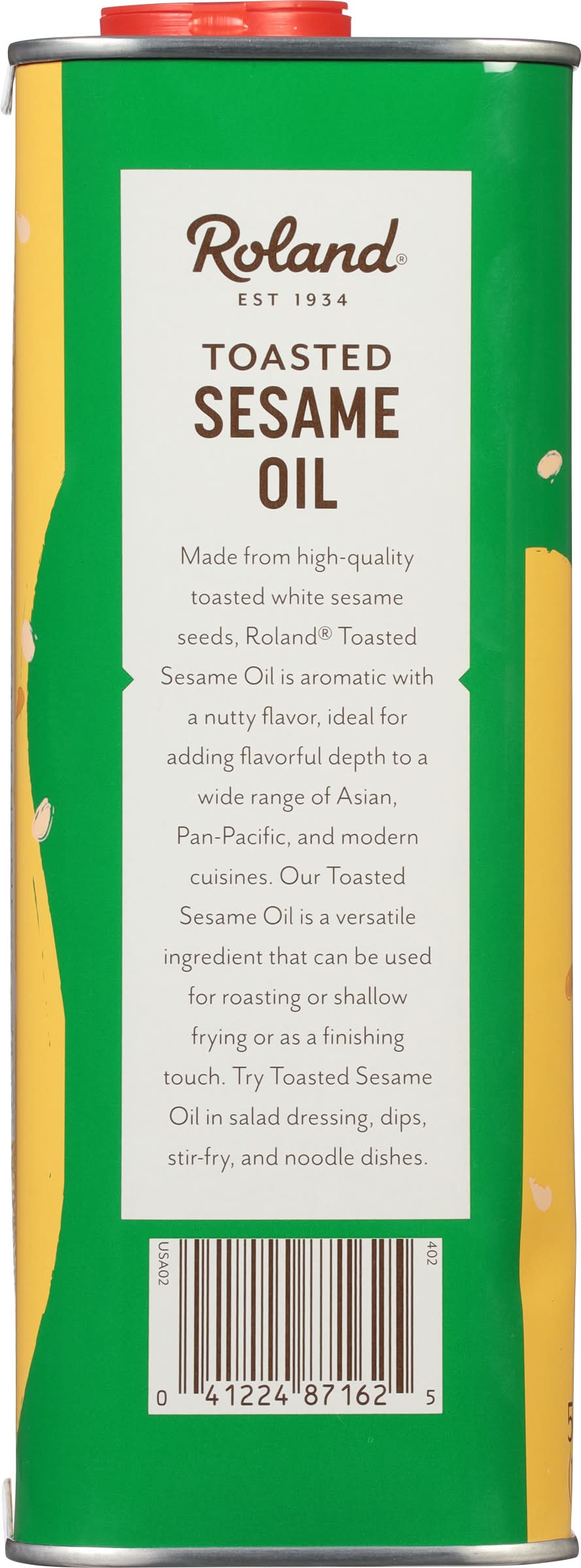 Aromatic oil. Nutty flavor. Est 1934. Expeller pressed. Made from high-quality toasted white sesame seeds, Roland Toasted Sesame Oil is aromatic with a nutty flavor, ideal for adding flavorful depth to a wide range of Asian, Pan-Pacific, and modern cuisines. Our Toasted Sesame Oil is versatile ingredient that can be used for roasting or shallow frying or as a finishing touch. www.rolandfoods.com. Product of Taiwan.