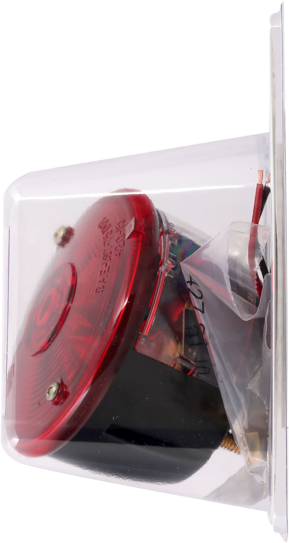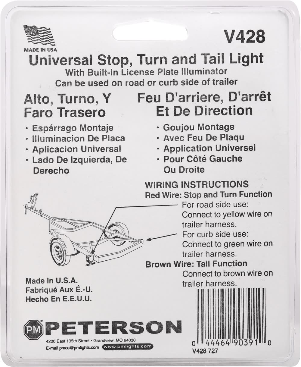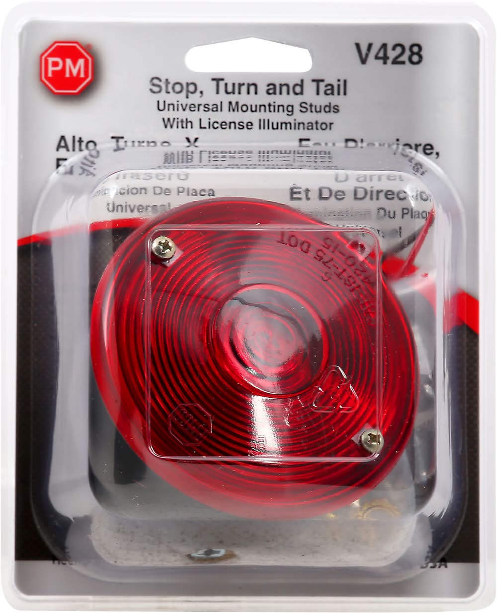 Universal mounting studs. With license illuminator. With built-in license plate illuminator. Can be used on road or curb side of trailer. www.pmlights.com. Made in USA.