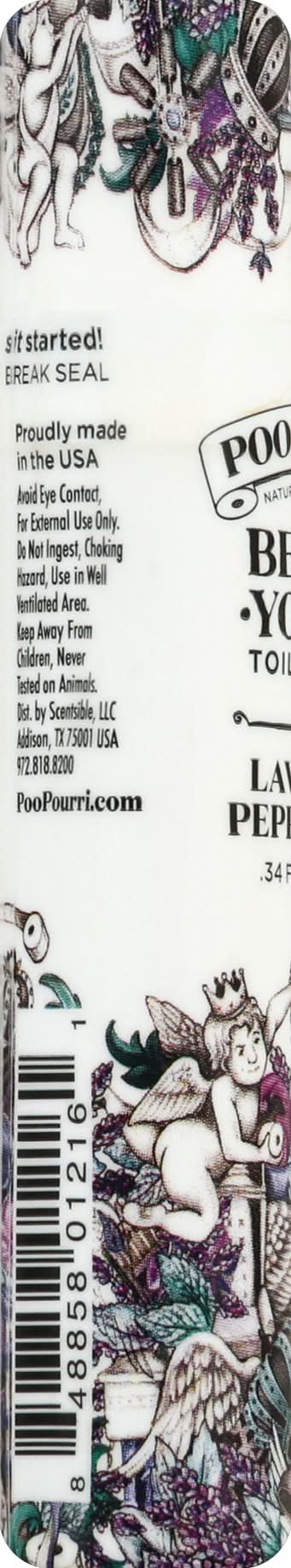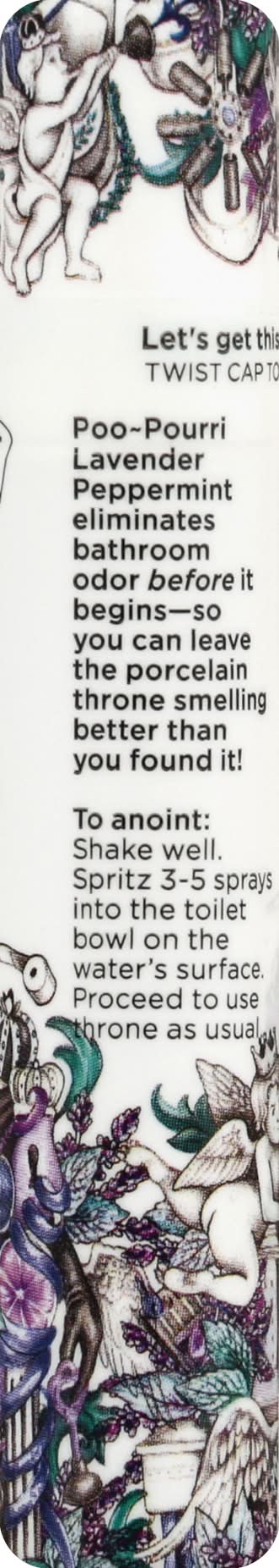 Natural essential oils. Let's get this sit started! Poo-Pourri Lavender Peppermint eliminates bathroom odor before it begins - so you can leave the porcelain throne smelling better than you found it! PooPourri.com. Proudly made in the USA.