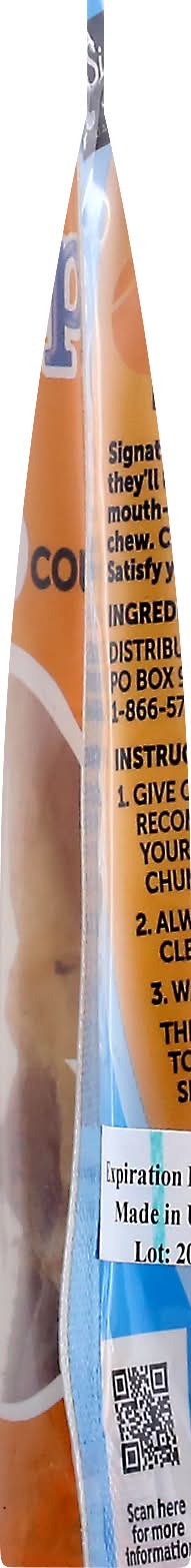 Natural smoked flavor edded Signature Pet Care Bullstrips provide your dog chews they’ll love. Our superior-quality chews offer mouth-watering flavors that fulfill your dog’s need to chew. Cleans teeth due to the abrasive act of chewing. Satisfy your dog with a Signature Pet Care chew every day! 100% money back guarantee. Quality guaranteed. Scan for more information. Made in USA. Lucerne North America LLC, Pleasanton, CA, 94566-0009, Ph: 866-578-4395