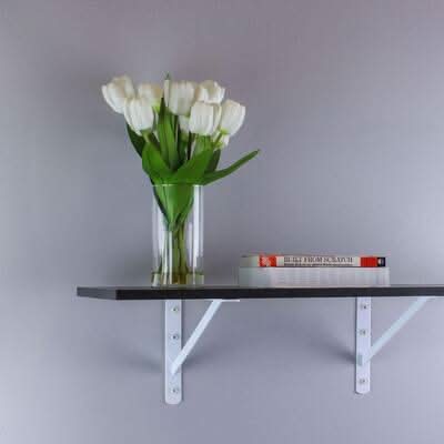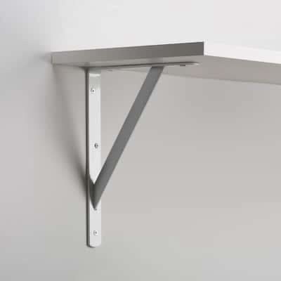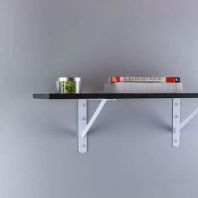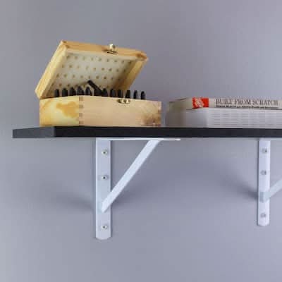 The Everbilt 12 in. x 8 in. Heavy Duty Shelf Bracket is ideal for closets, garages, sheds or any shelving needs. Compatible with wood, plastic or metal shelving. Easy to install. • Color: White • Size: 12 in x 8 in
