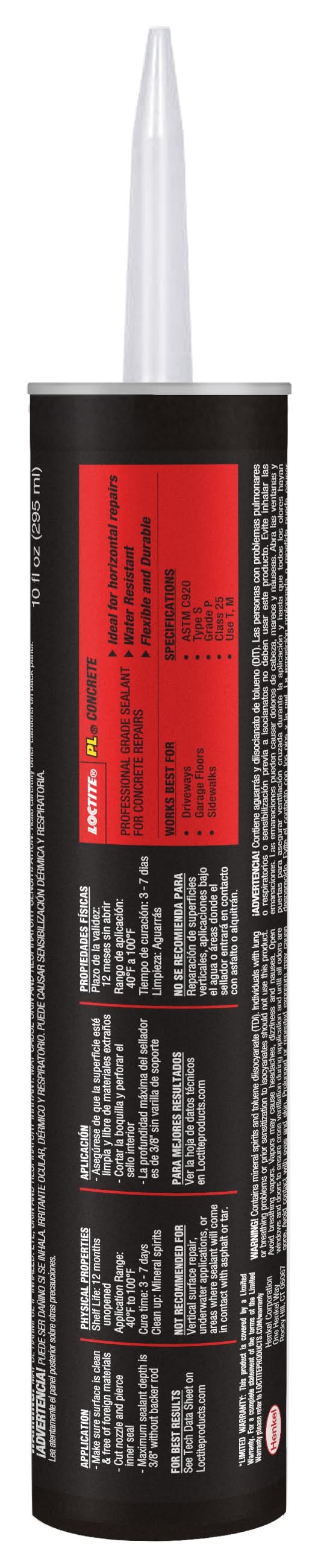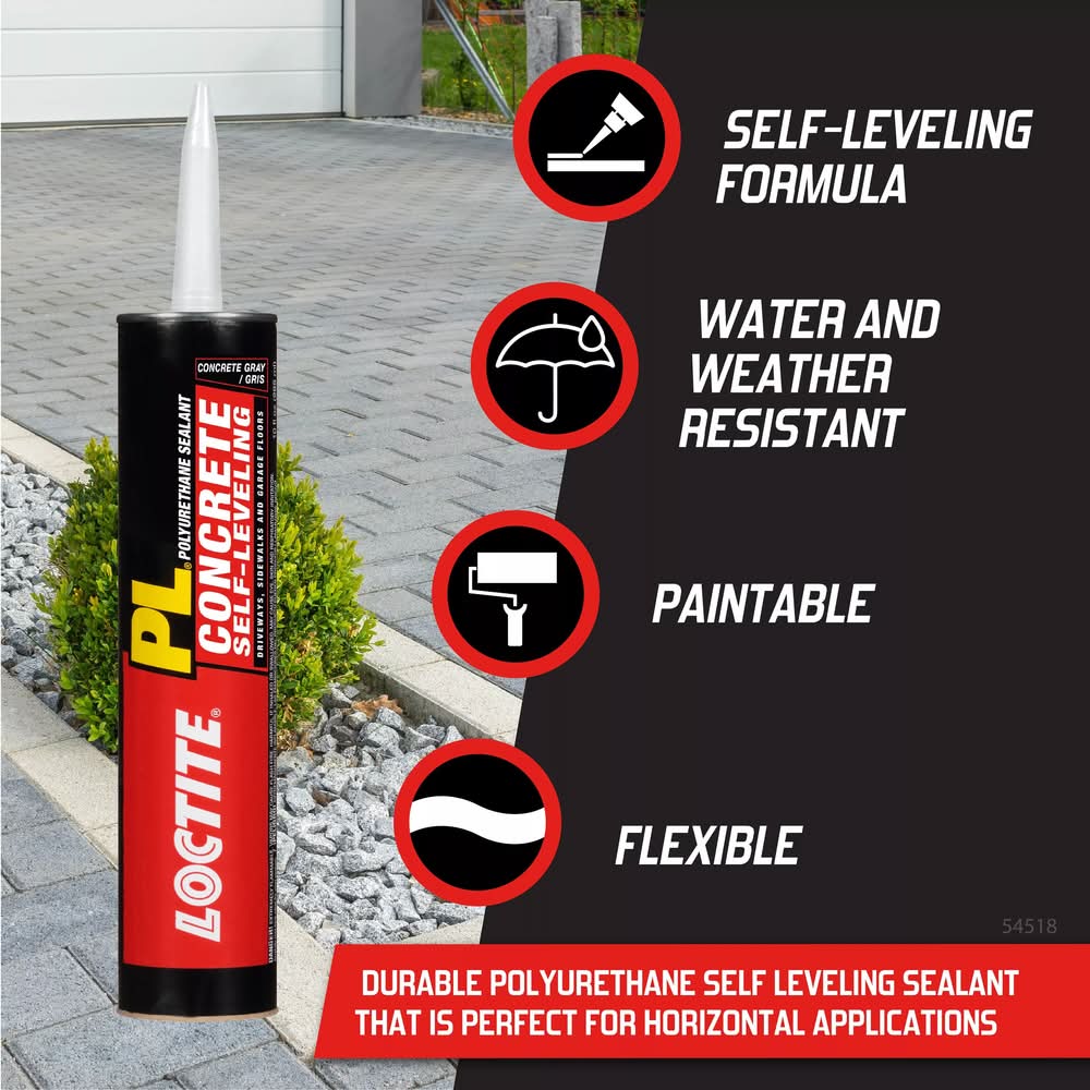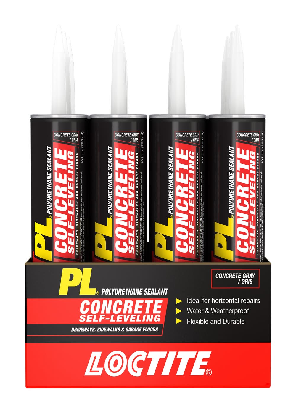 Loctite PL Concrete Self-Leveling Polyurethane Sealant is a professional grade sealant for contraction/expansion joints and cracks in concrete, driveways, sidewalks, and garage floors. It cures in place This product contains a chemical known in the State of California to cause cancer. This product contains a chemical known to the State of California to cause birth defects or other reproductive harm. This product contains a chemical known in the State of California to cause cancer. - www.P65Warnings.ca.gov. Color: Grey