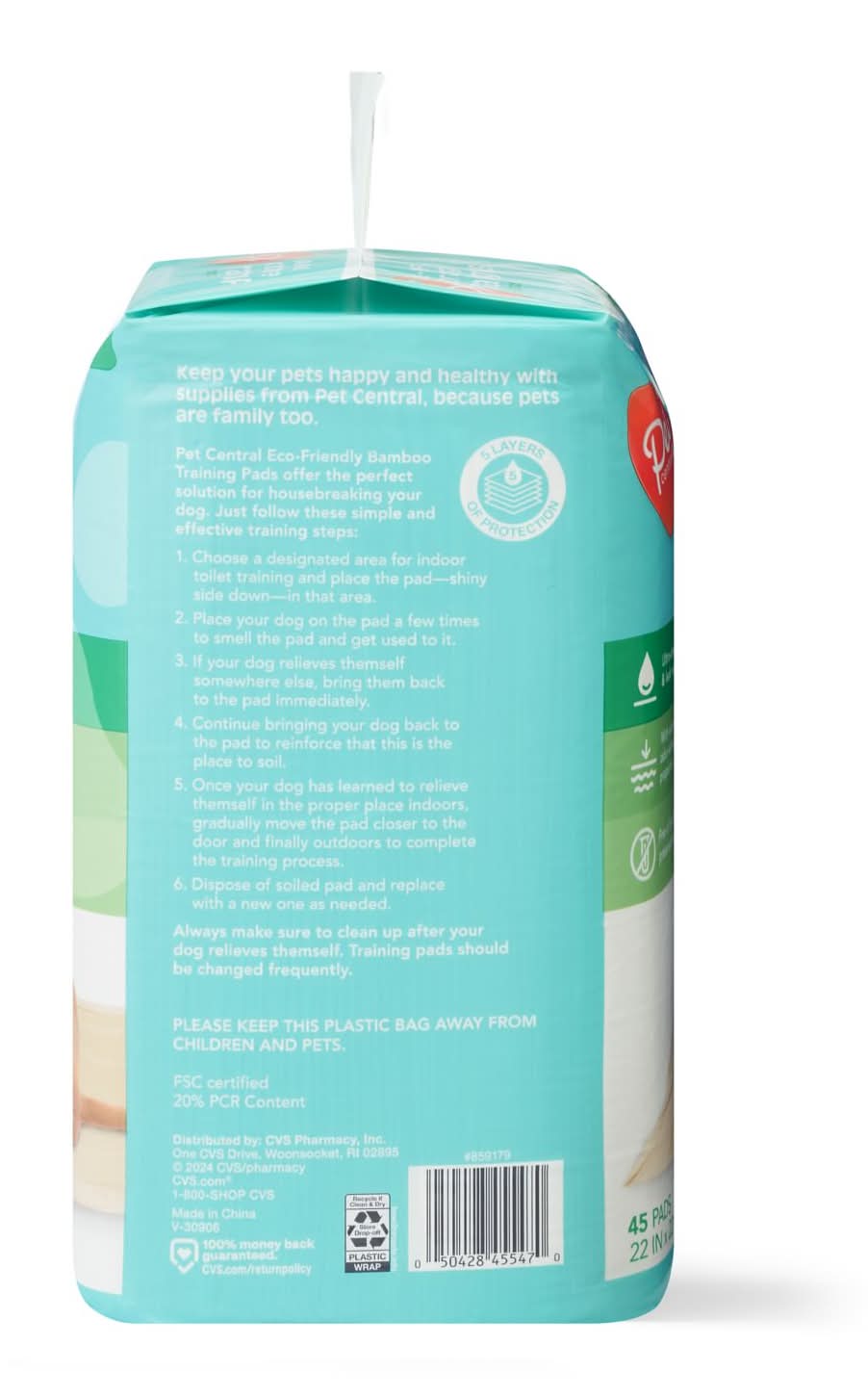 Pet Central Eco Friendly Bamboo Training Pads, 22X22 in (45 ct)