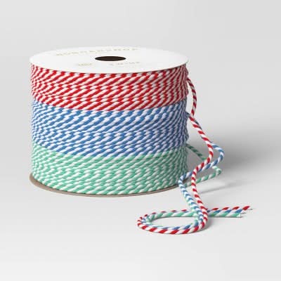 Wrap your holiday treats and gifts using the 3 End Christmas Baker's Twine 180' Red/Blue/Green from Wondershop. Each spool offers 60 feet of durable cotton twine in festive red, blue and green. Perfect for tying up baked goods, adding a cheerful vibe to gift wraps or crafting holiday decorations, this set has all the twine you need to make your Christmas creations merry and bright.