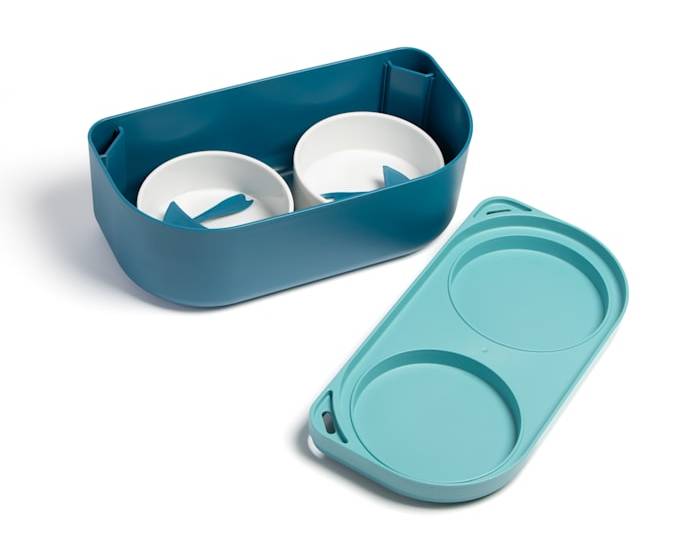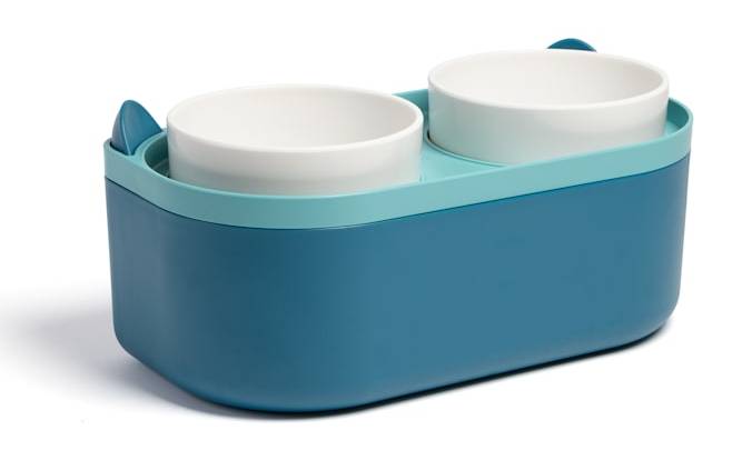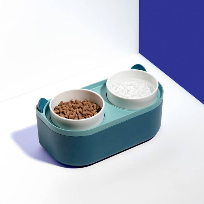 Jupiter Double Food Bowl Stand and Storage For Cats 4.23 Cups, Regular, Teal