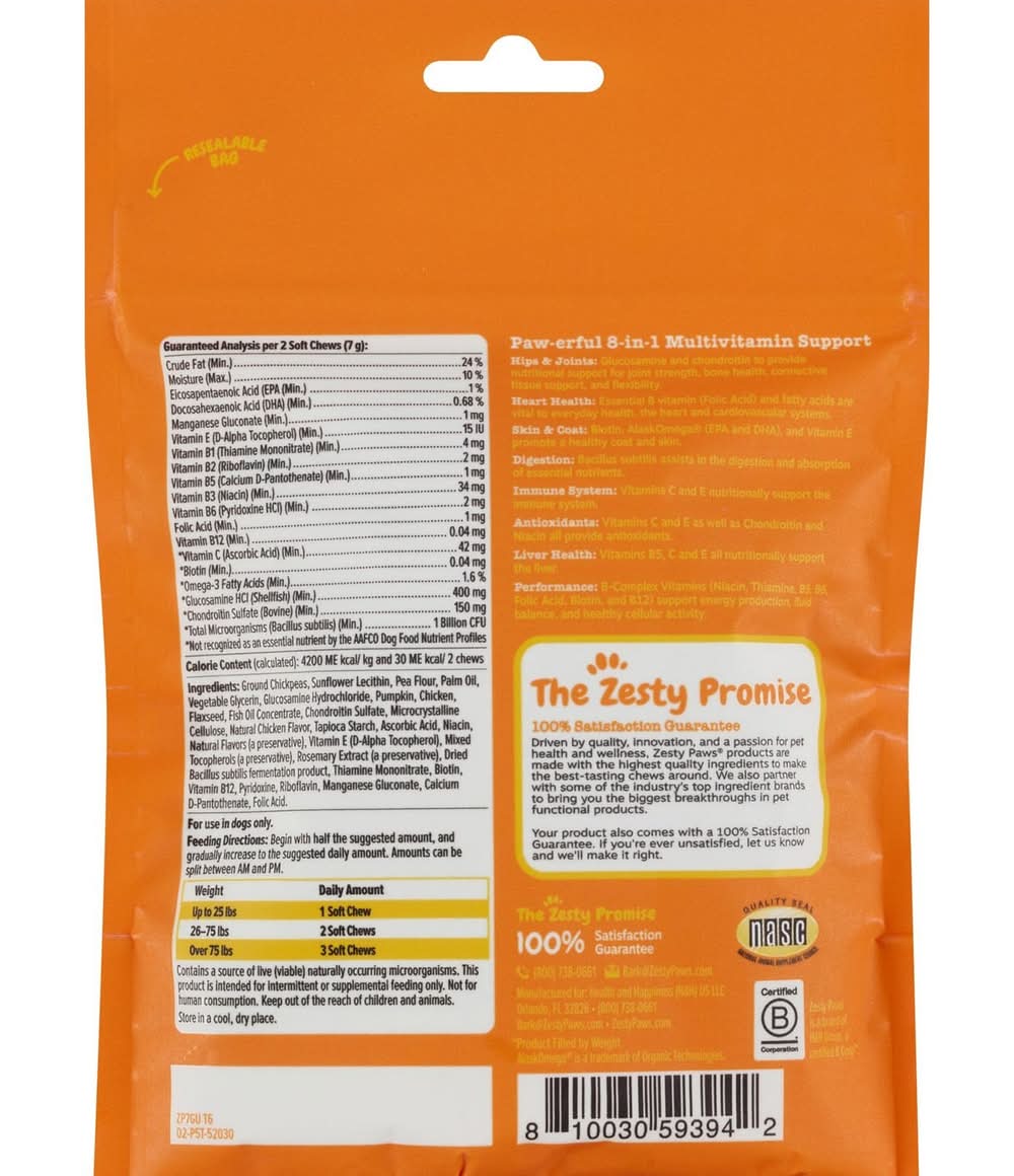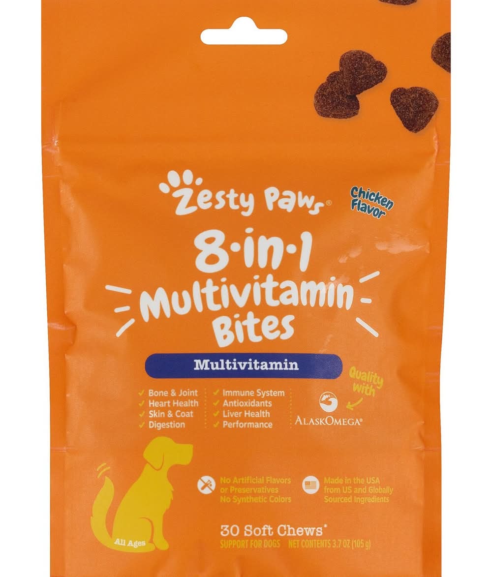 Zesty Paws 8-In-1 Multivitamin Soft Chew Bites For Dogs (3.7 oz, 30 ct)