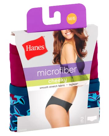 Hanes Microfiber Cheeky Panties, Size M, Blue-Pink (2 ct)