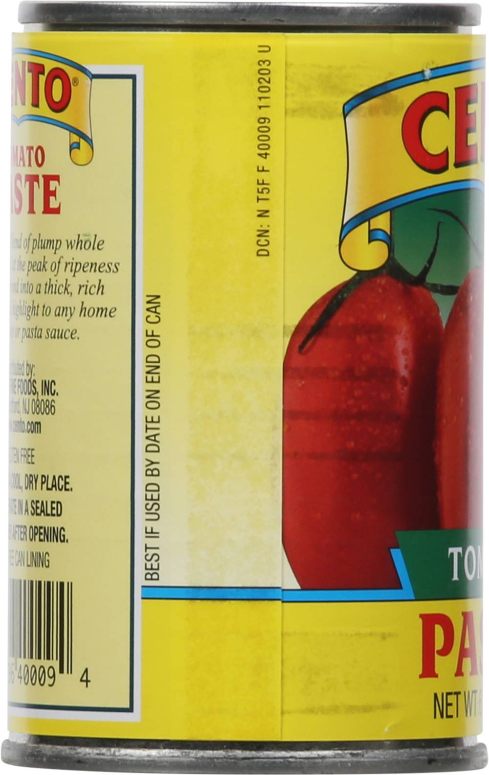 Gluten free. A traditional blend of plump whole tomatoes picked at the peak of ripeness then softly ground into a thick, rich paste. A tasteful highlight to any home cooked soup or pasta sauce. www.cento.com. BPA free can lining. Cento Fine Foods, West Deptford, NJ 08086